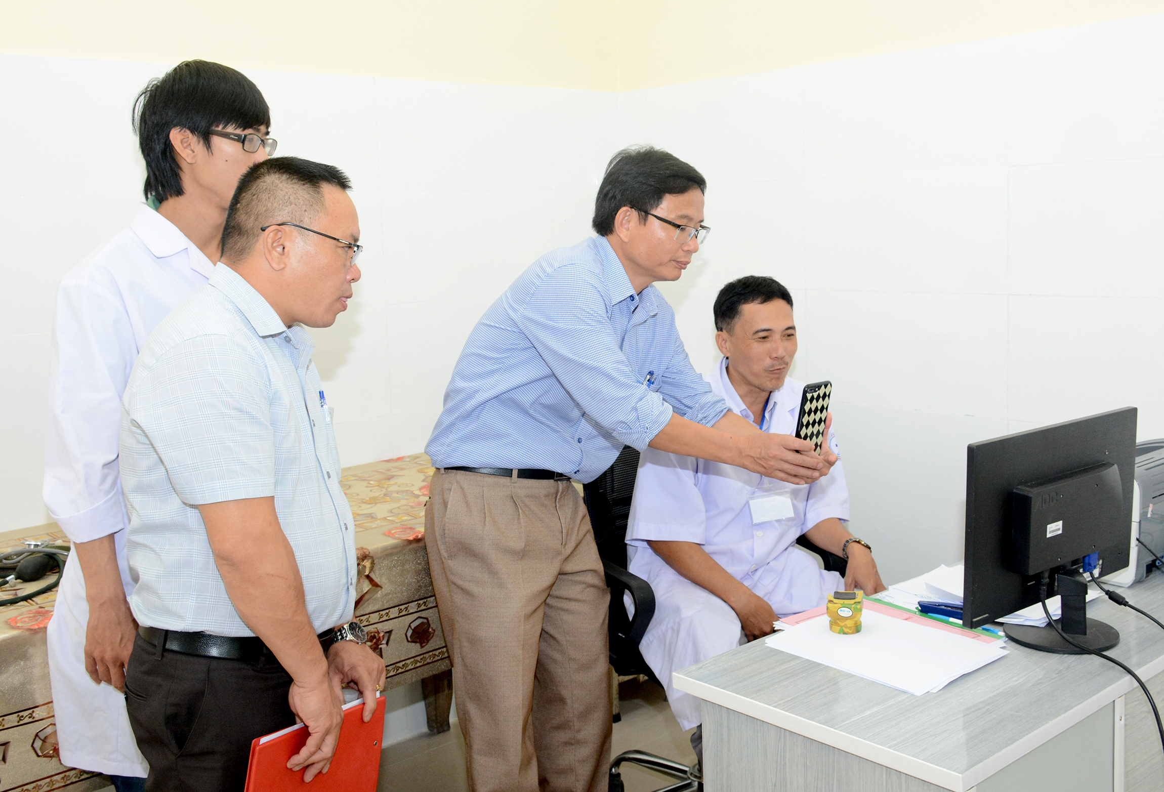 Kiểm tra đánh giá công tác ứng dụng CNTT và TCMR tại trạm Y tế xã Lộc Thủy và xã Lộc Trì.