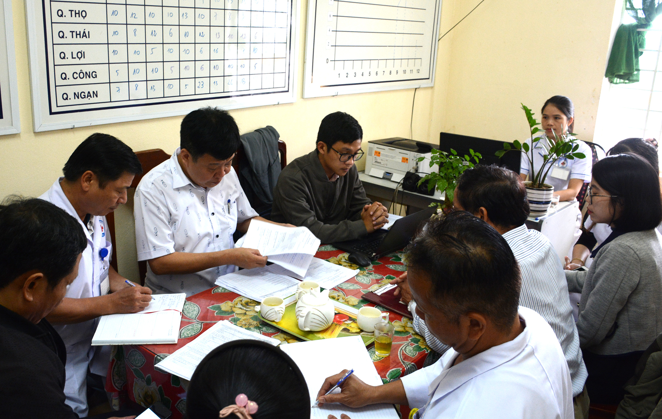 Thực hiện kế hoạch của Sở Y tế, ngày 7.12.2023, Đoàn công tác của Sở Y tế và Chi cục DS-KHHGĐ, Trung tâm KSBT, Chi cục ATVSTP tổ chức phúc tra và đánh giá hoạt động y tế năm 2023 tại TTYT huyện Quảng Điền. BSCKII Nguyễn Phương Tuấn - Giám đốc, cùng Ban lãnh đạo, Trưởng các khoa/phòng chuyên môn/nghiệp vụ của đơn vị tiếp và làm việc với Đoàn.