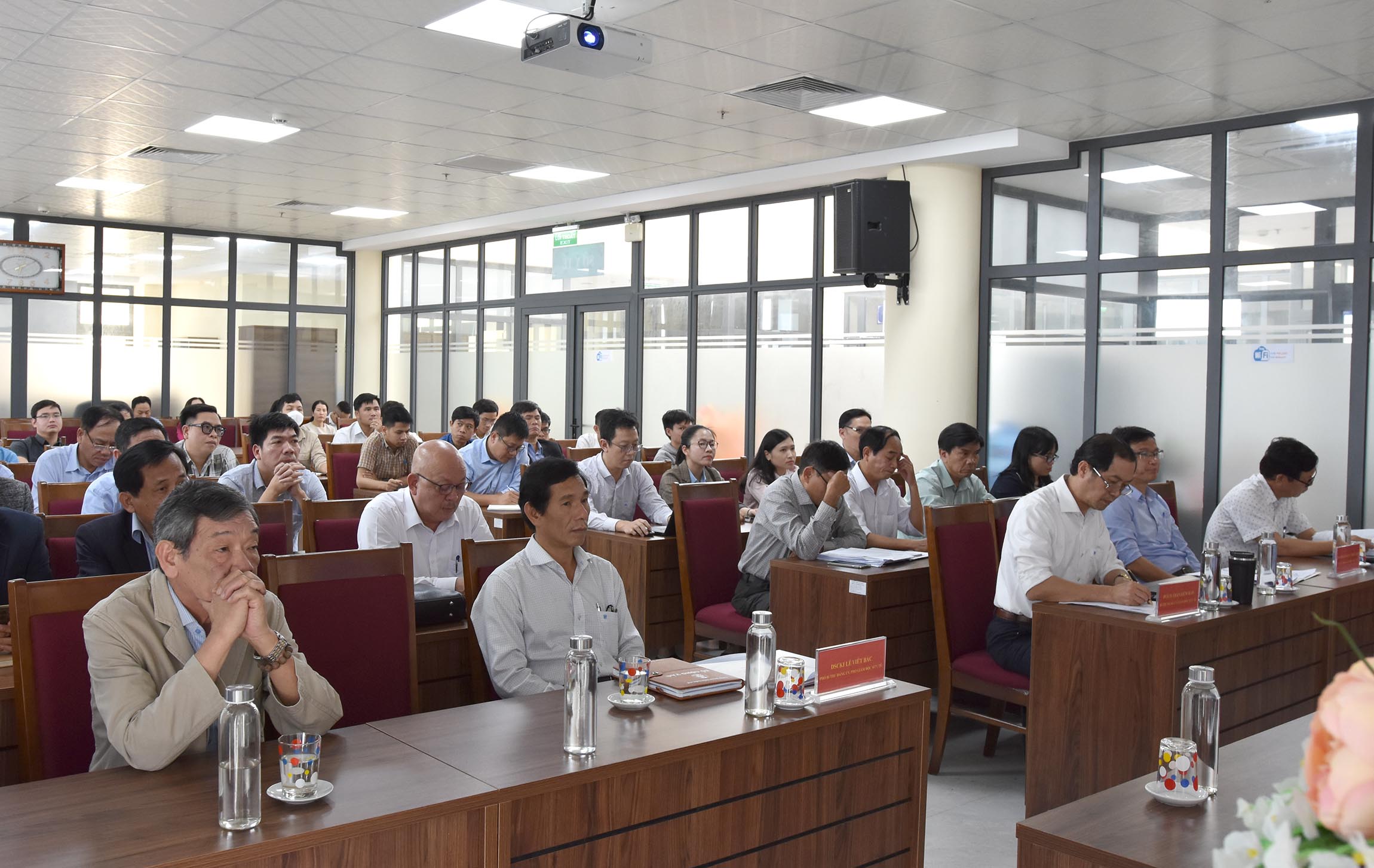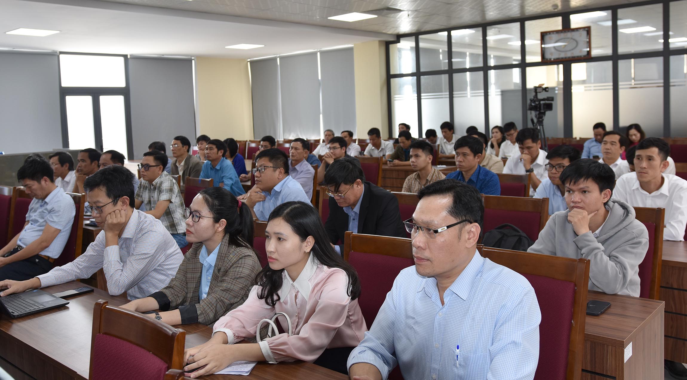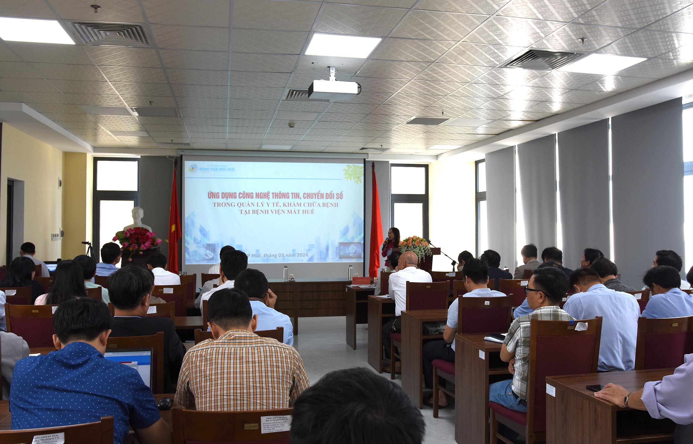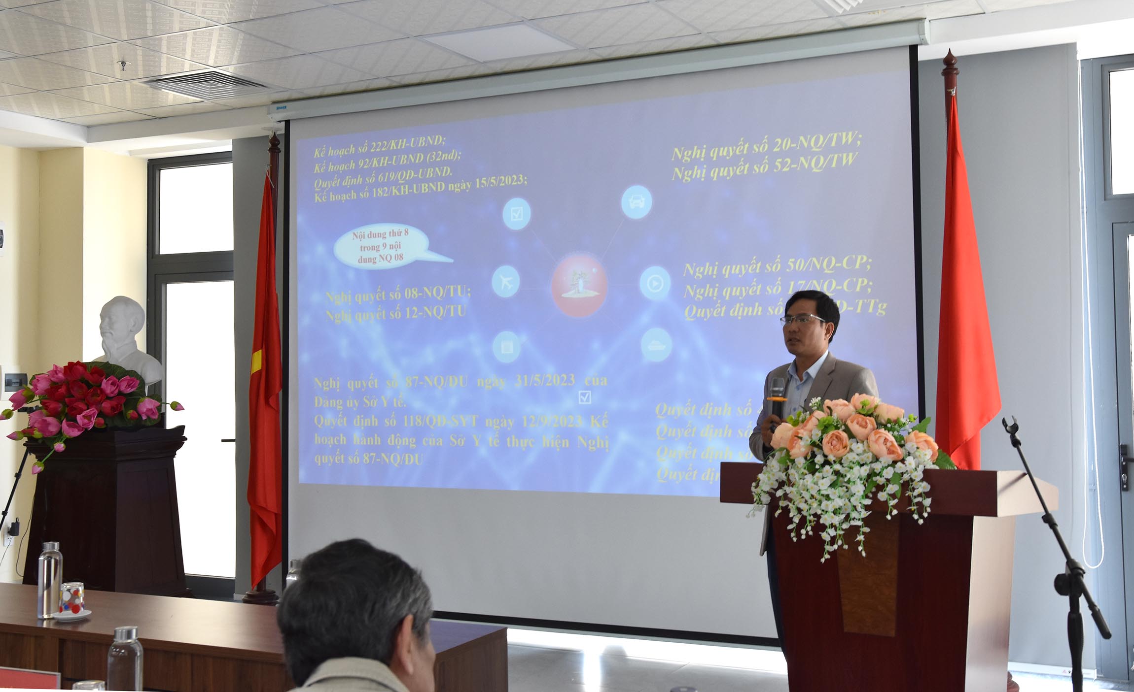 ThS Nguyễn Đào - Phó phụ trách Văn phòng Sở Y tế triển khai Kế hoạch chuyển đổi số Y tế năm 2024 và BSCKII Nguyễn Phúc Duy - Chuyên viên Phòng Nghiệp vụ Y báo cáo chuyên đề "Chuyển đổi số trong công tác khám, chữa bệnh".