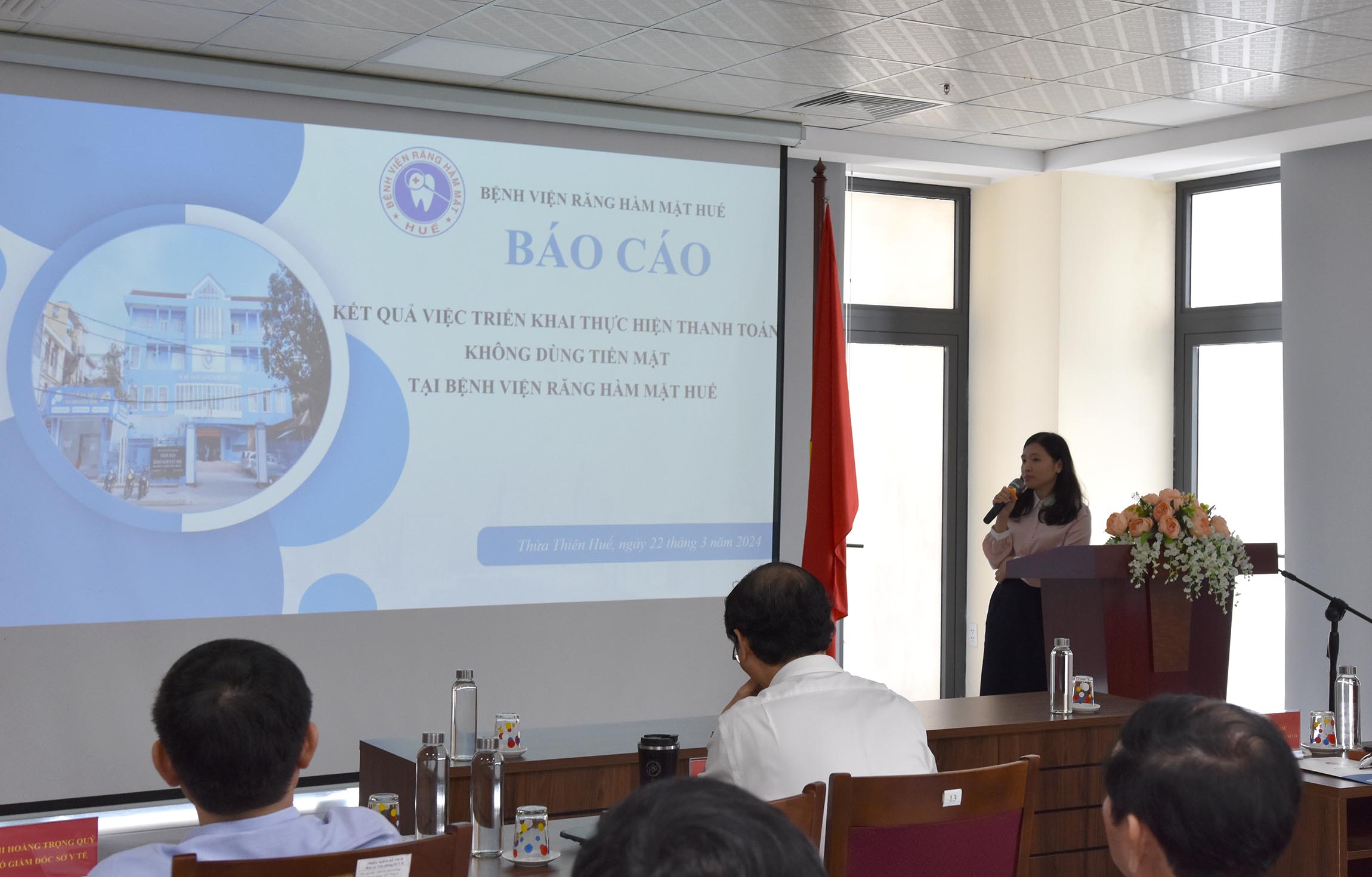 DS Nguyễn Thị Như Ý - Trưởng Phòng Kế hoạch BV Mắt Huế và BS Nguyễn Hoàng Dạ Hợp - PGĐ BV Răng Hàm Mặt Huế báo cáo ứng dụng CNTT và CĐS đang triển khai có hiệu quả tại đơn vị.
