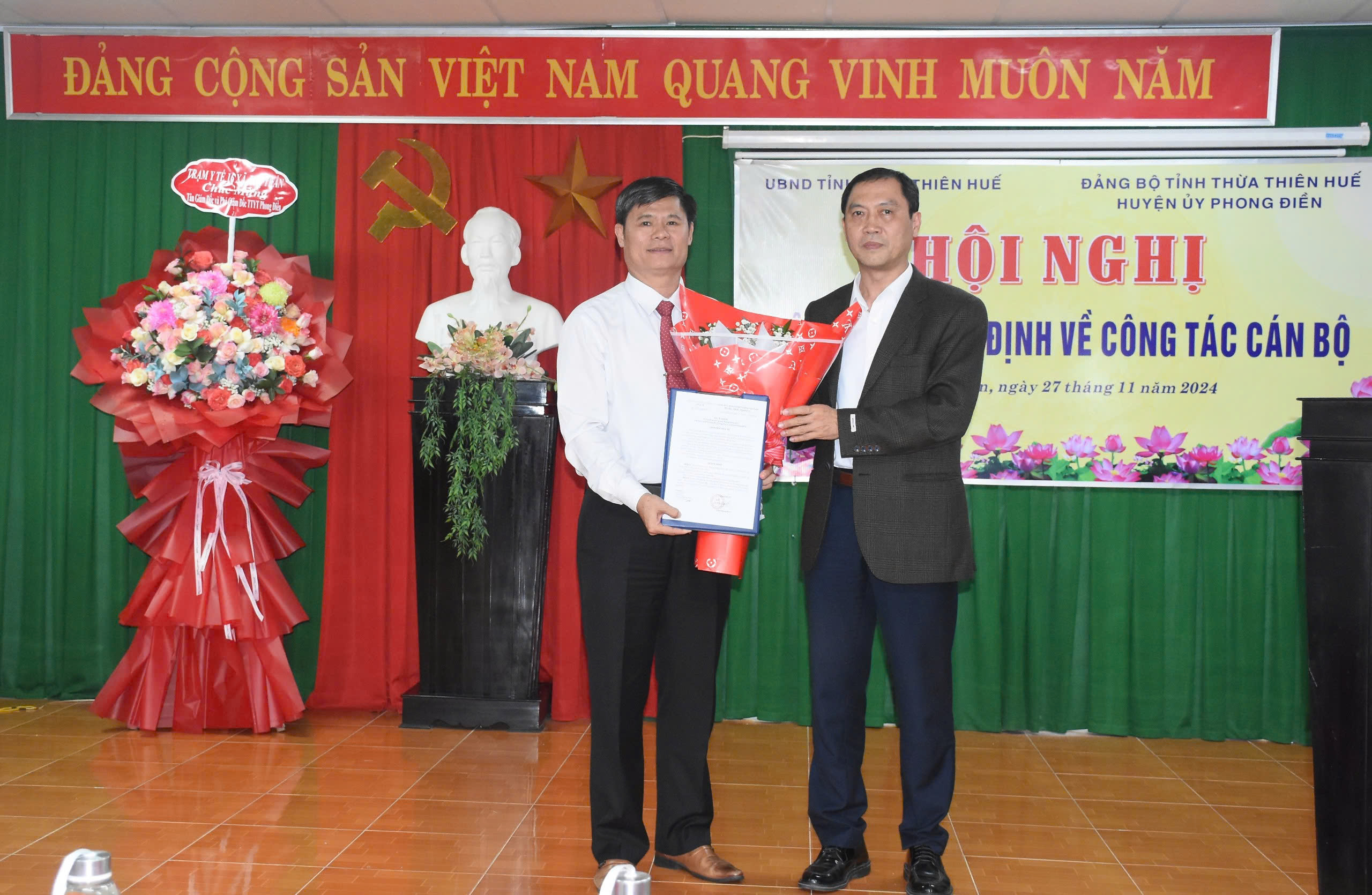 - Quyết định của Chủ tịch UBND tỉnh Thừa Thiên Huế về việc bổ nhiệm ông Hoàng Hồng Sơn, Phó Giám đốc TTYT huyện Phong Điền giữ chức vụ Giám đốc TTYT huyện Phong Điền, thời hạn giữ chức vụ là 05 năm kể từ ngày 01/12/2024 đến ngày 30/11/2029.