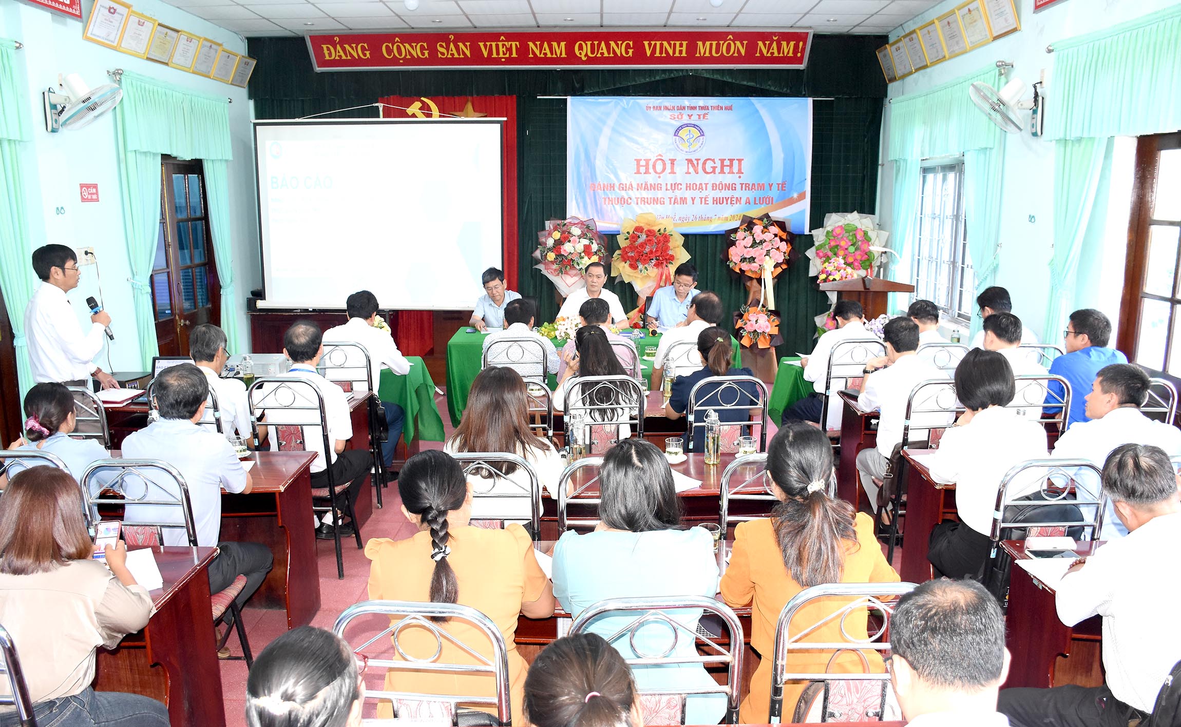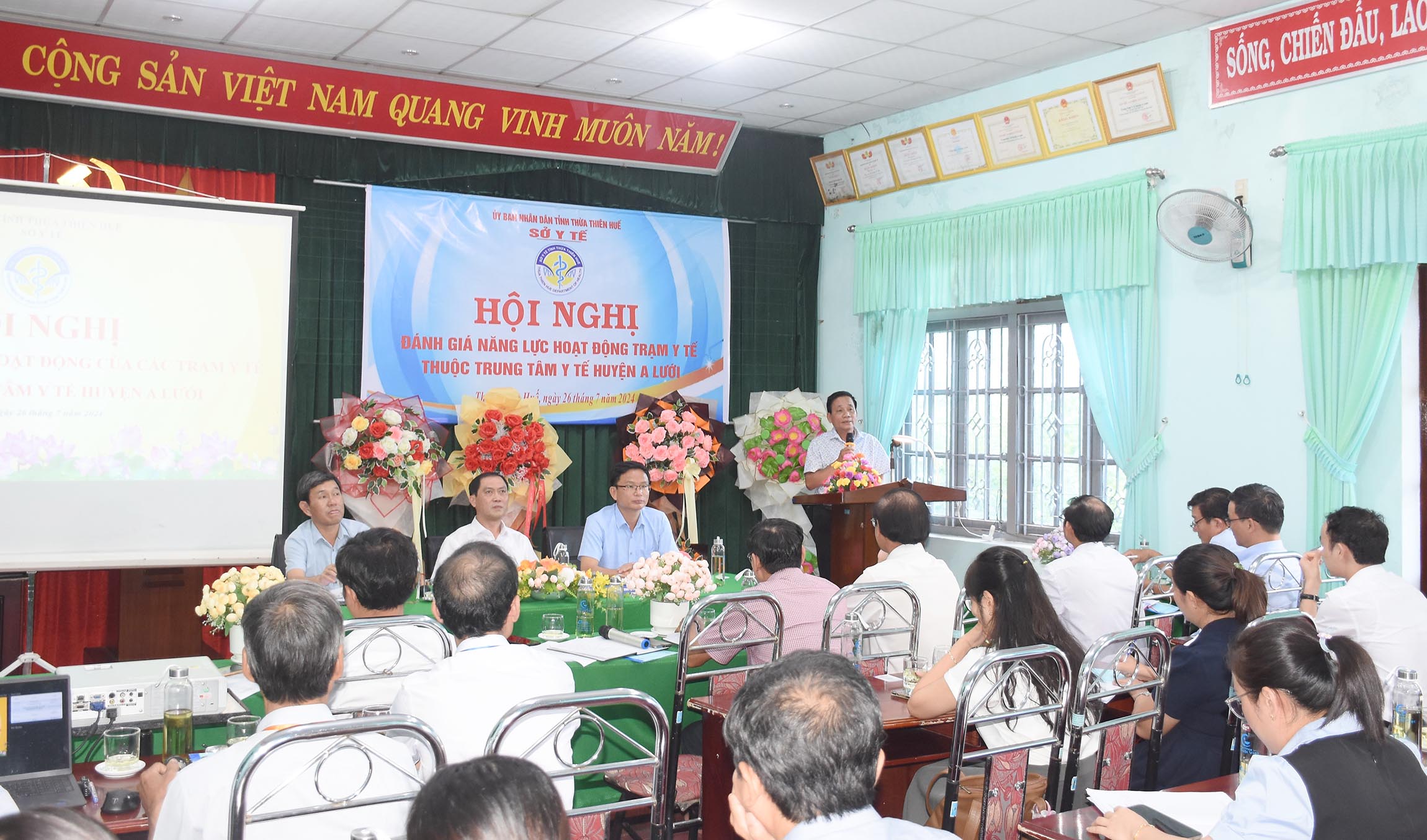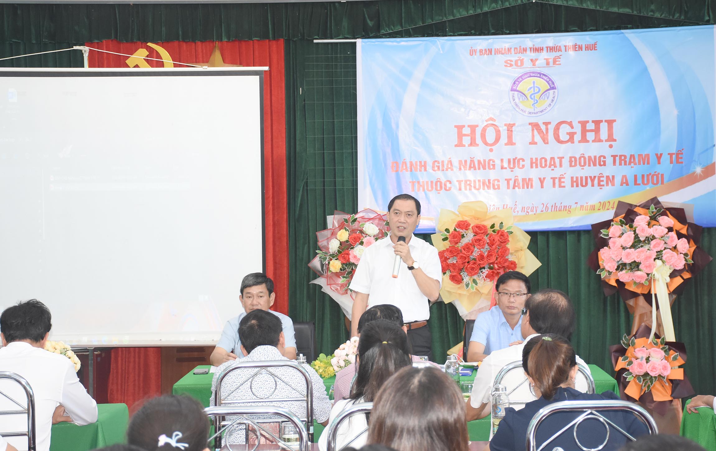 Ngày 26/7 tại huyện A Lưới, Sở Y tế tổ chức Hội nghị đánh giá năng lực hoạt động các trạm Y tế thuộc Trung tâm Y tế huyện A Lưới, PGS.TS.BS. Trần Kiêm Hảo - Giám đốc Sở Y tế chủ trì hội nghị. Ban Giám đốc, Trưởng/Phó các Phòng và chuyên viên Sở Y tế; Lãnh đạo và các bộ phận liên quan của Trung tâm Kiểm soát bệnh tật tỉnh, Chi cục DS-KHHGĐ, Chi cục ATVSTP; Ban Giám đốc, lãnh đạo các khoa/phòng chuyên môn/chức năng và 18 Trưởng trạm Y tế huyện A Lưới cùng tham dự.