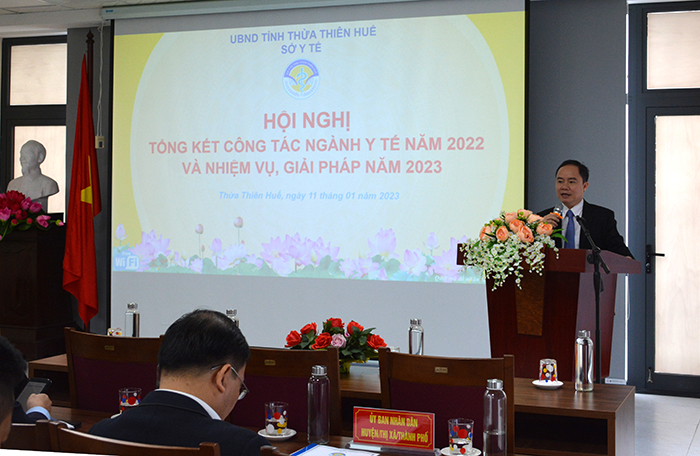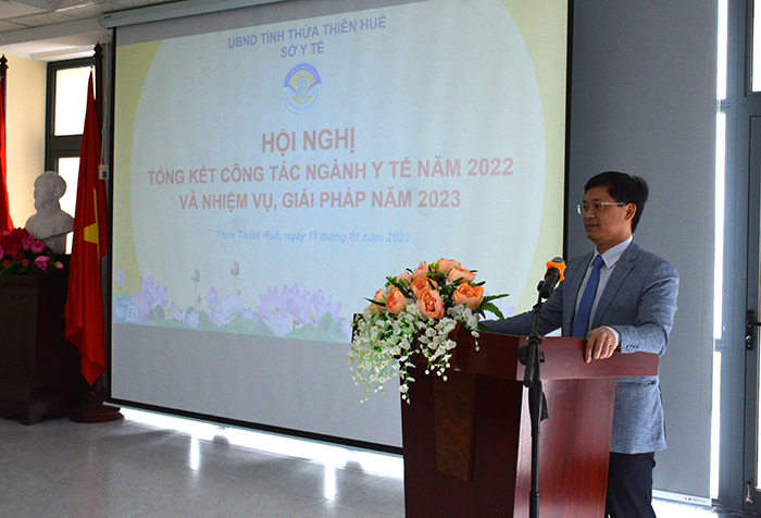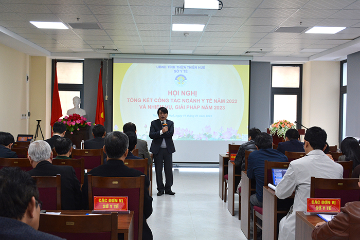 Phát biểu tại hội nghị, ông Nguyễn Thanh Bình - UVTV tỉnh ủy, Phó Chủ tịch Thường trực UBND tỉnh ghi nhận, biểu dương những cống hiến đầy trách nhiệm của đội ngũ lãnh đạo/cán bộ/nhân viên trong toàn ngành Y tế, đã khắc phục mọi khó khăn, nỗ lực phấn đấu hoàn thành xuất sắc mọi kế hoạch, chỉ tiêu đã đề ra, góp quan trọng trong công tác KCB và công tác y tế dự phòng trong năm qua. Đồng thời nhấm mạnh, năm 2023, Lãnh đạo Ngành Y tế và các địa phương cần tăng cường chỉ đạo, đẩy mạnh công tác giám sát nhằm chủ động phát hiện, kịp thời ngăn chặn các loại dịch bệnh, khống chế không để dịch lớn bùng phát. Có giải pháp phối hợp cụ thể với các địa phương, ban/ngành, đẩy mạnh và quyết liệt hơn trong tiêm vắc xin phòng Covid-19. Bám sát Nghị quyết của Tỉnh ủy, chỉ đạo của UBND tỉnh, Bộ Y tế, phối hợp với các đơn vị, tham mưu cho UBND các cấp những chính sách, định hướng, quy hoạch để phát triển ngành y tế theo Nghị quyết 08- NQ/TU về xây dựng, phát triển tỉnh Thừa Thiên Huế trở thành TTYT chuyên sâu của khu vực miền Trung - Tây Nguyên, thúc đẩy phát triển kinh tế - xã hội, đóng góp vào quá trình phát triển toàn diện con nguời, nâng cao thể lực, phát triển tốt về thể chất và tinh thần, tăng tuổi thọ, nâng cao đời sống của người dân, bảo đảm thực hiện tốt công tác chăm sóc, bảo vệ và nâng cao sức khỏe nhân dân trong tình hình mới.