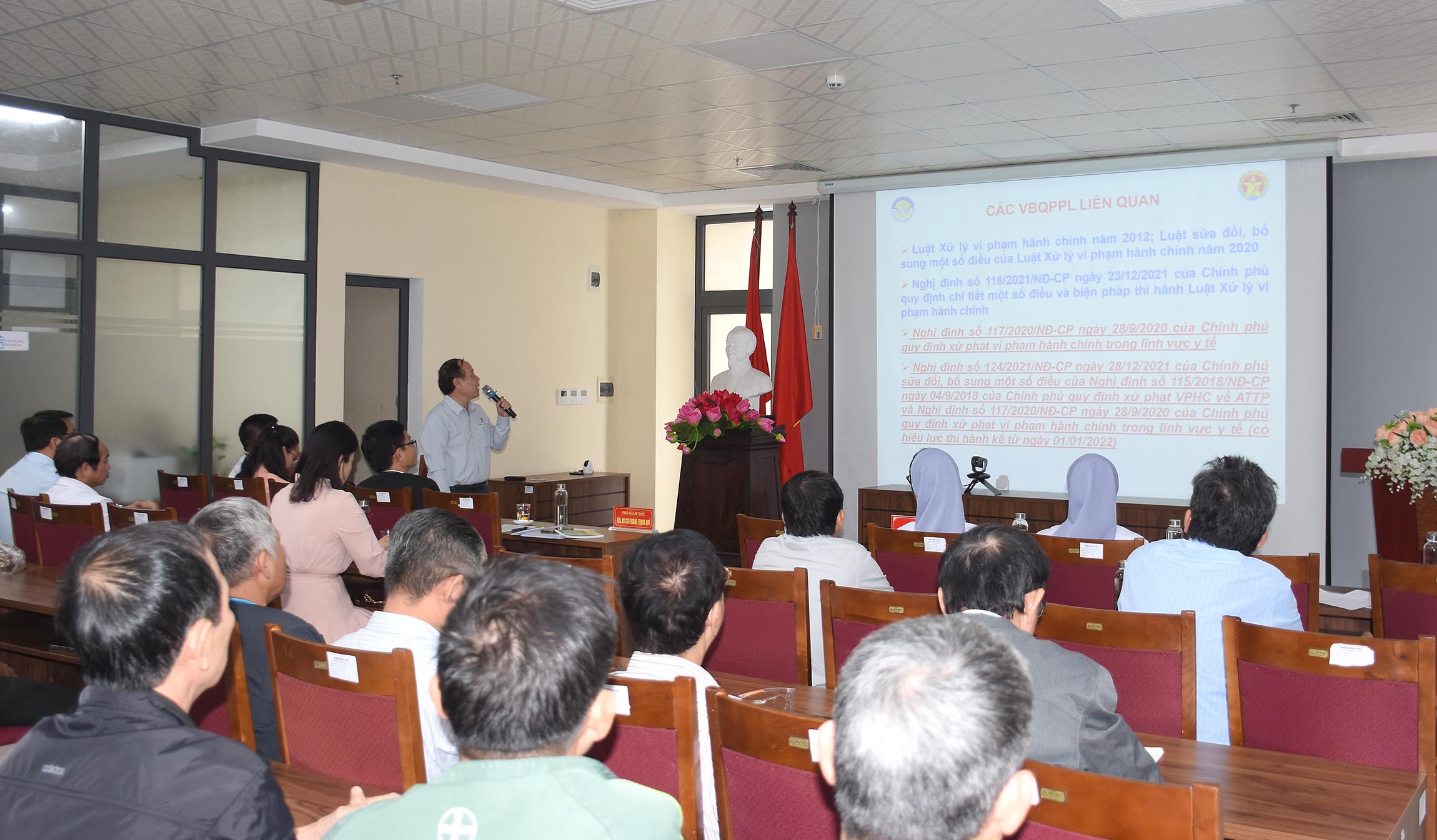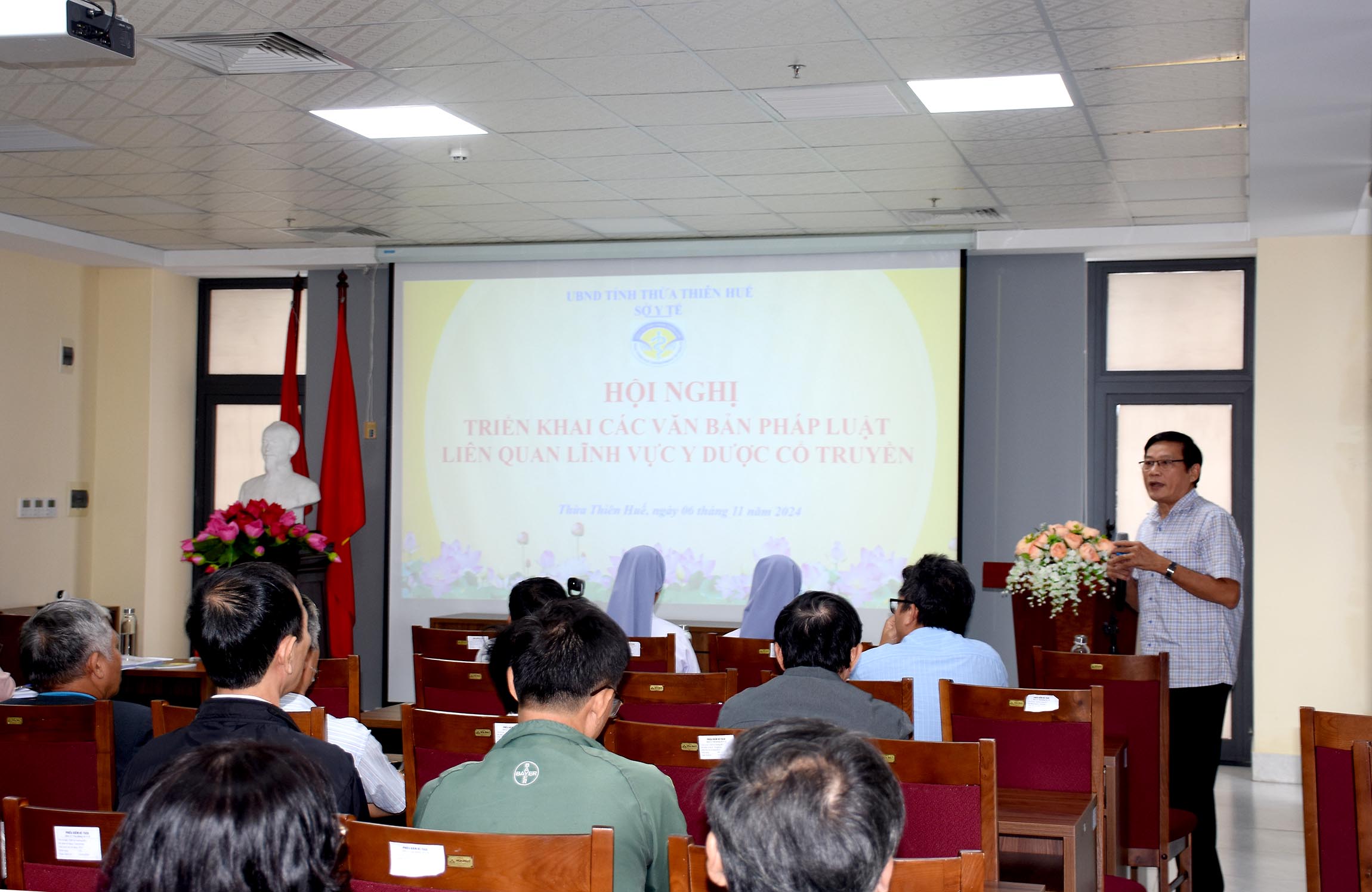 Chiều ngày 06/11, Sở Y tế tổ chức “Hội nghị triển khai các văn bản pháp luật liên quan lĩnh vực Y học cổ truyền”, ThS.BSCKII Hoàng Trọng Quý - Phó Giám đốc Sở Y tế chủ trì hội nghị. Tham dự hội nghị có lãnh đạo/chuyên viên các Phòng Nghiệp vụ Y, Nghiệp vụ Dược, Thanh tra và các bộ phận liên quan của TT Kiểm nghiệm Thuốc - Thực phẩm - Mỹ phẩm cùng các Phòng khám, Phòng chẩn trị YHCT và chủ cơ sở kinh doanh dược liệu, thuốc dược liệu, thuốc cổ truyền.
