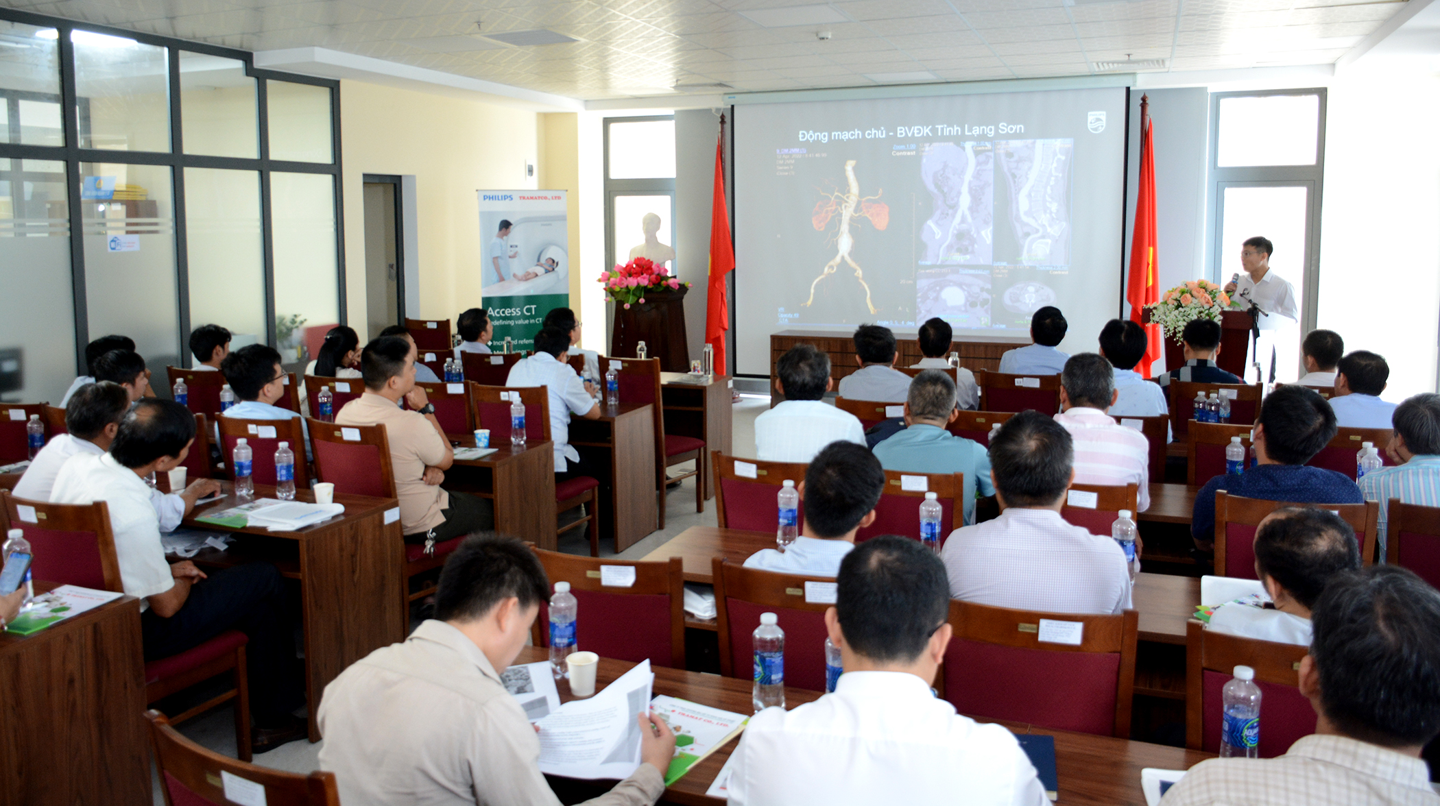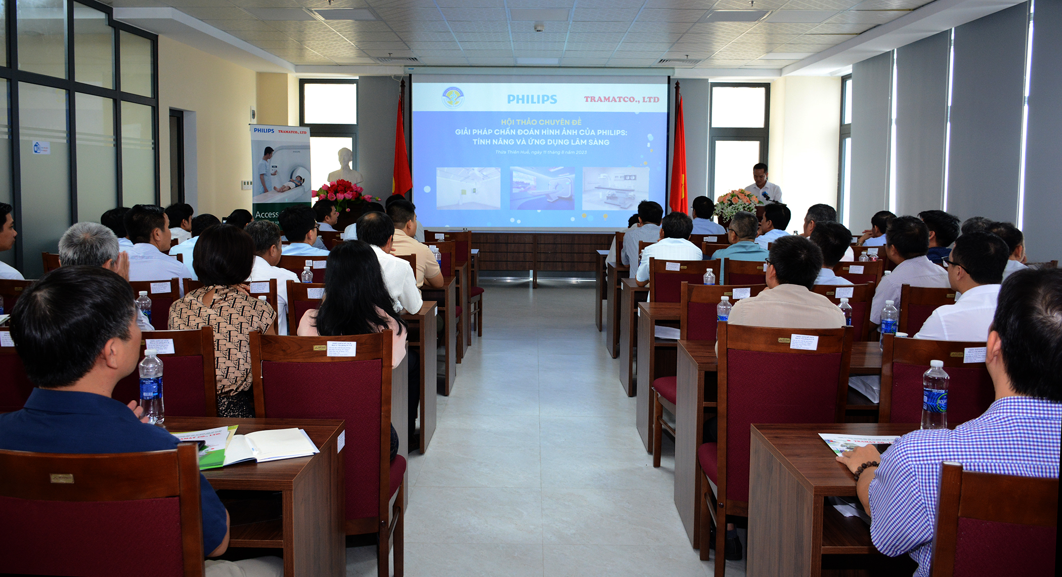 Ngày 11/8/2023, Sở Y tế phối hợp với Tập đoàn công nghệ y tế Philips và Công ty Thương mại Vật tư khoa học kỹ thuật (Tramat Co., LTD) tổ chức Hội thảo chuyên đề “Giải pháp chẩn đoán hình ảnh cắt lớp vi tính (CT) và X quang kỹ thuật số (DR) của Philips: tính năng và ứng dụng lâm sàng”. Tham dự hội thảo có Ban Giám đốc, lãnh đạo/chuyên viên các phòng, tổ trang thiết bị Y tế Sở Y tế. Lãnh đạo, bác sỹ, kỹ thuật viên làm công tác chẩn đoán hình ảnh và các cán bộ liên quan của 9 TTYT và các đơn vị khám chữa bệnh.