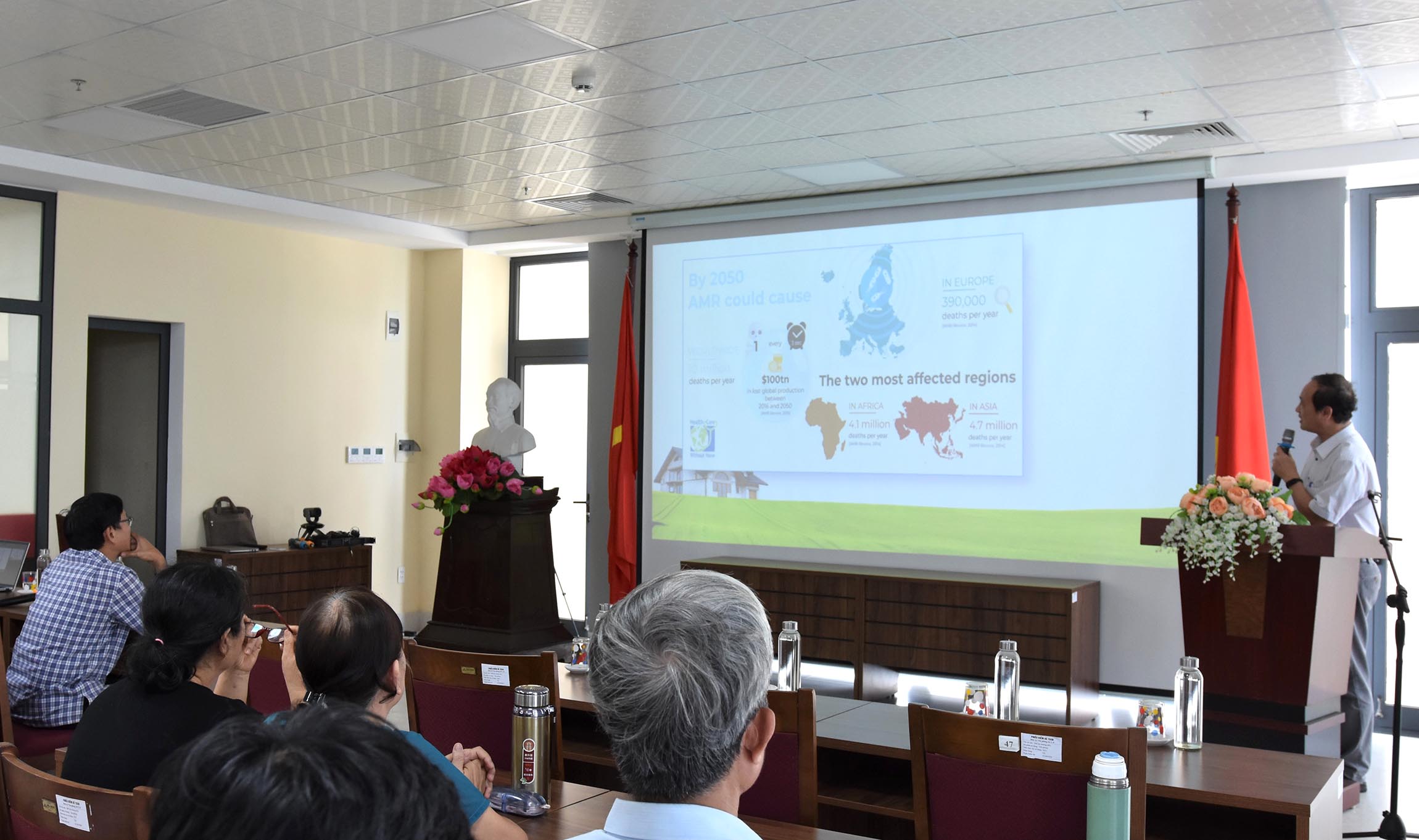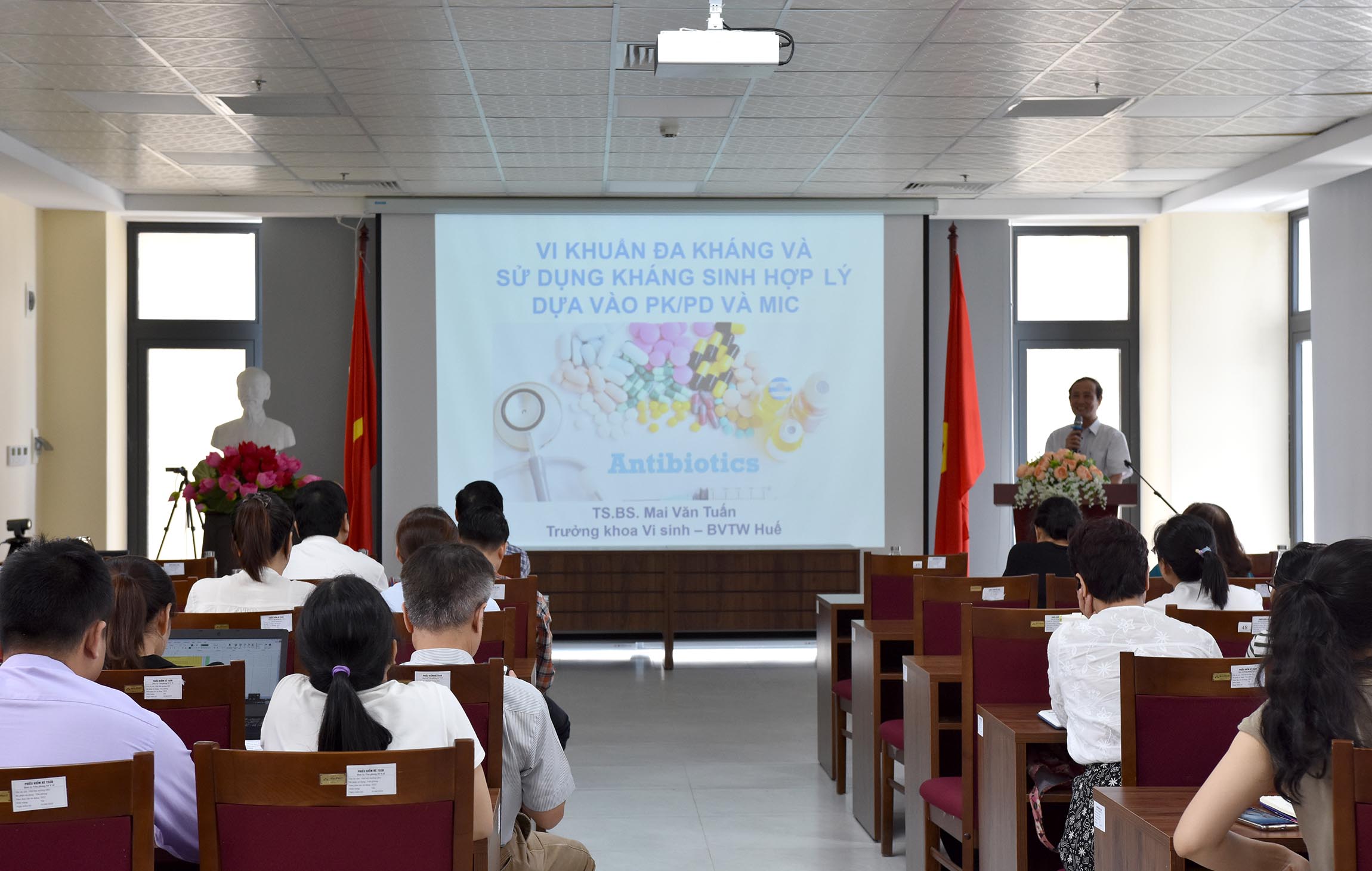 TS.BS Mai Văn Tuấn - Trưởng Khoa Vi sinh Bệnh viện Trưng ương Huế báo cáo chuyên đề quản lý sử dụng kháng sinh hợp lý, hiệu quả.