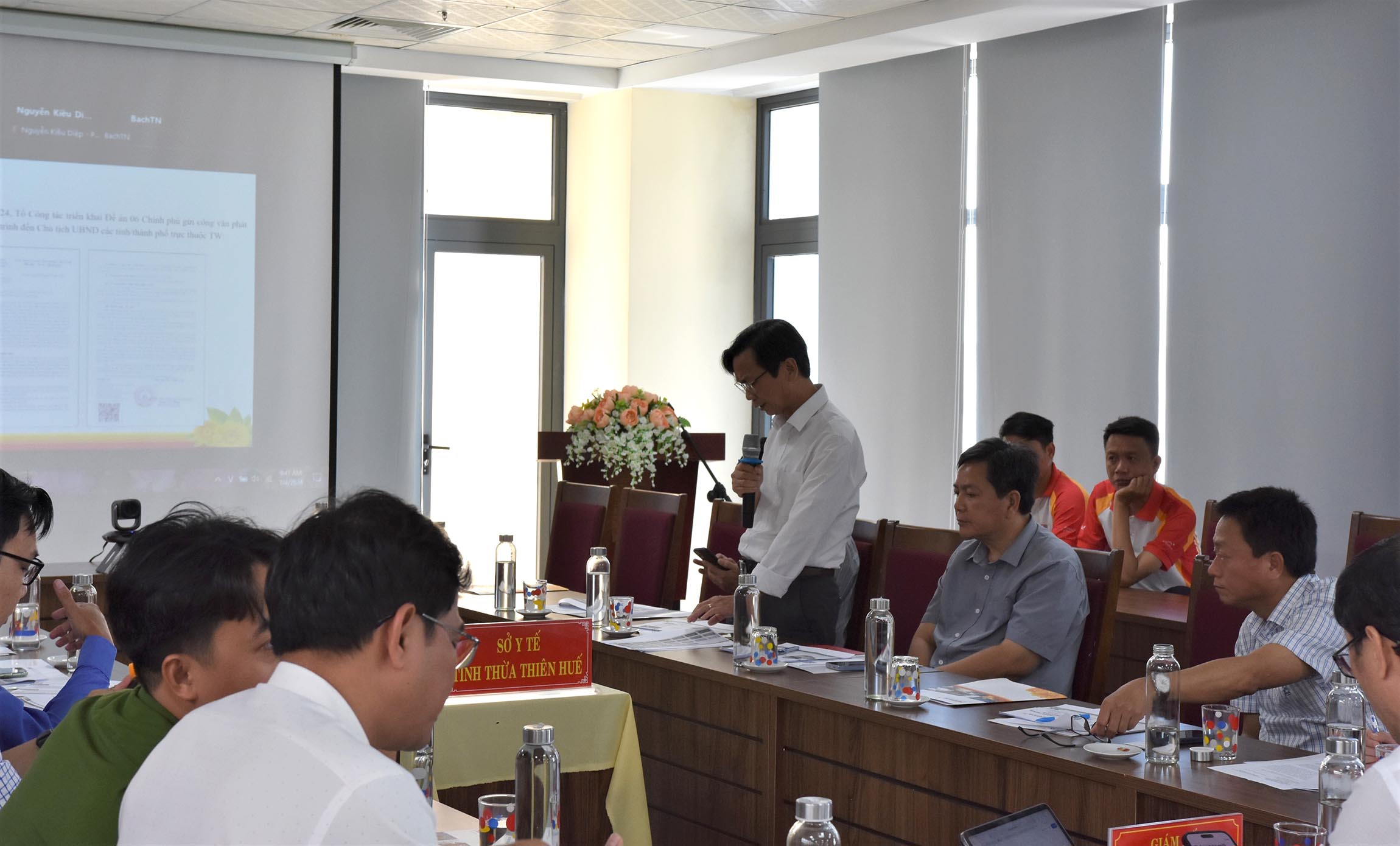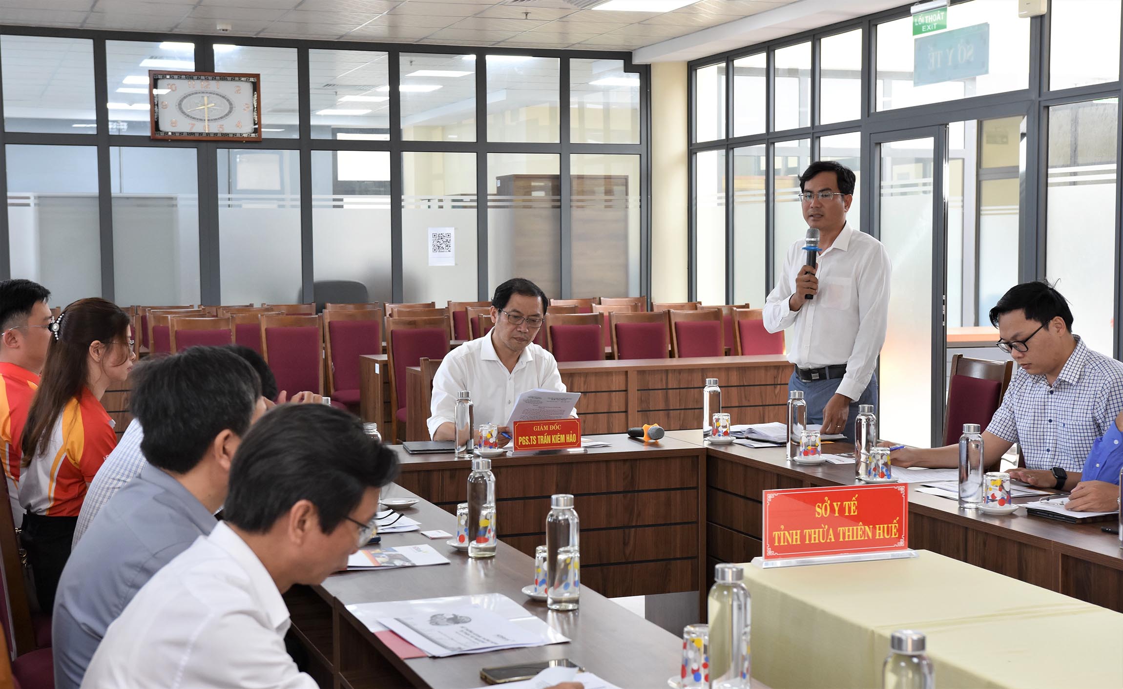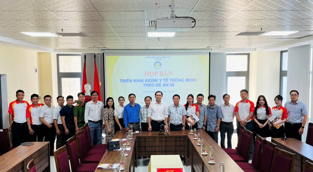 Thực hiện ý kiến chỉ đạo của UBND tỉnh, sáng ngày 04/7/2024, Sở Y tế tổ chức cuộc họp bàn “Triển khai miễn phí giải pháp KIOSK y tế thông minh đối với các cơ sở y tế theo Đề án 06/CP”. PGS.TS.BS Trần Kiêm Hảo - Giám đốc Sở Y tế chủ trì cuộc họp, với sự tham gia của lãnh đạo/chuyên viên Văn phòng, Phòng KHTC Sở Y tế, các đơn vị trực thuộc sở đăng ký tham gia triển khai, lãnh đạo/chuyên viên Ngân hàng TMCP Phát triển th/phố Hồ Chí Minh (HDBank) chi nhánh Huế, Phòng PC06 Công an tỉnh, Sở Thông tin và Truyền thông.