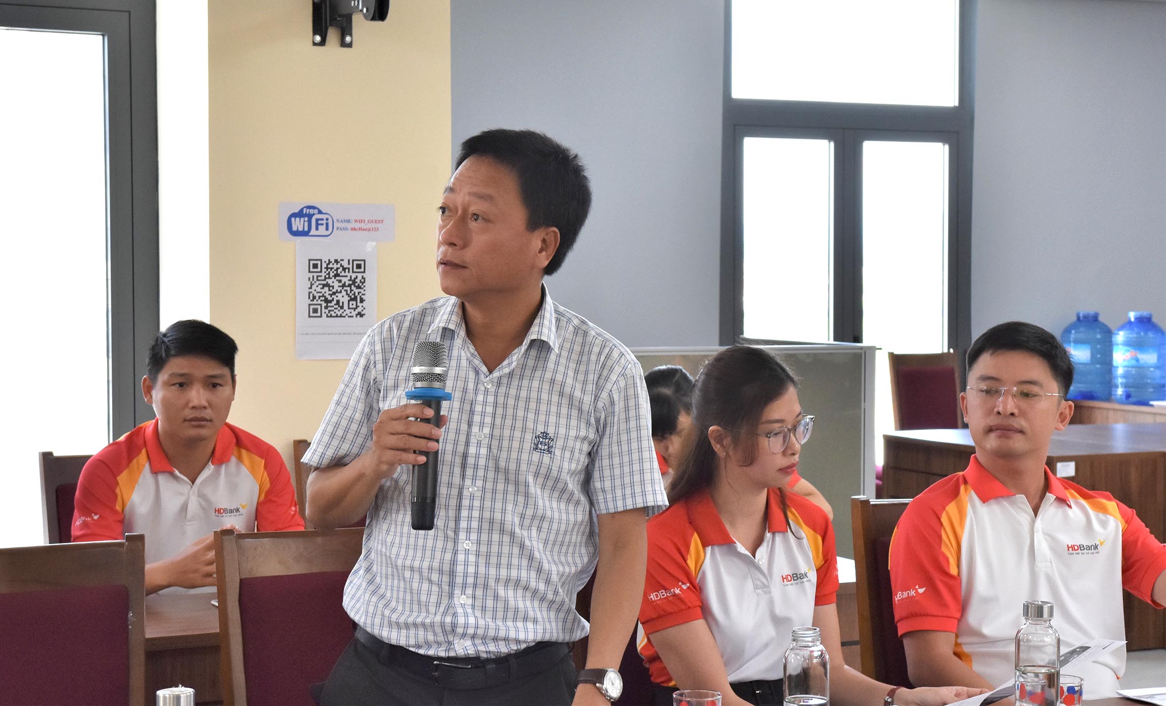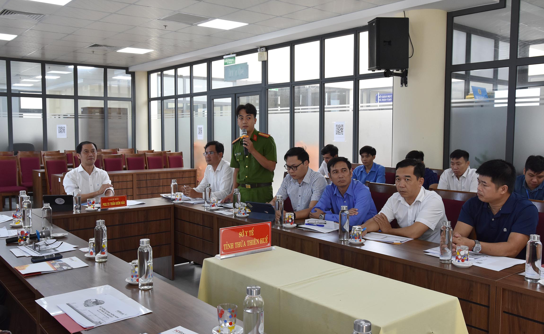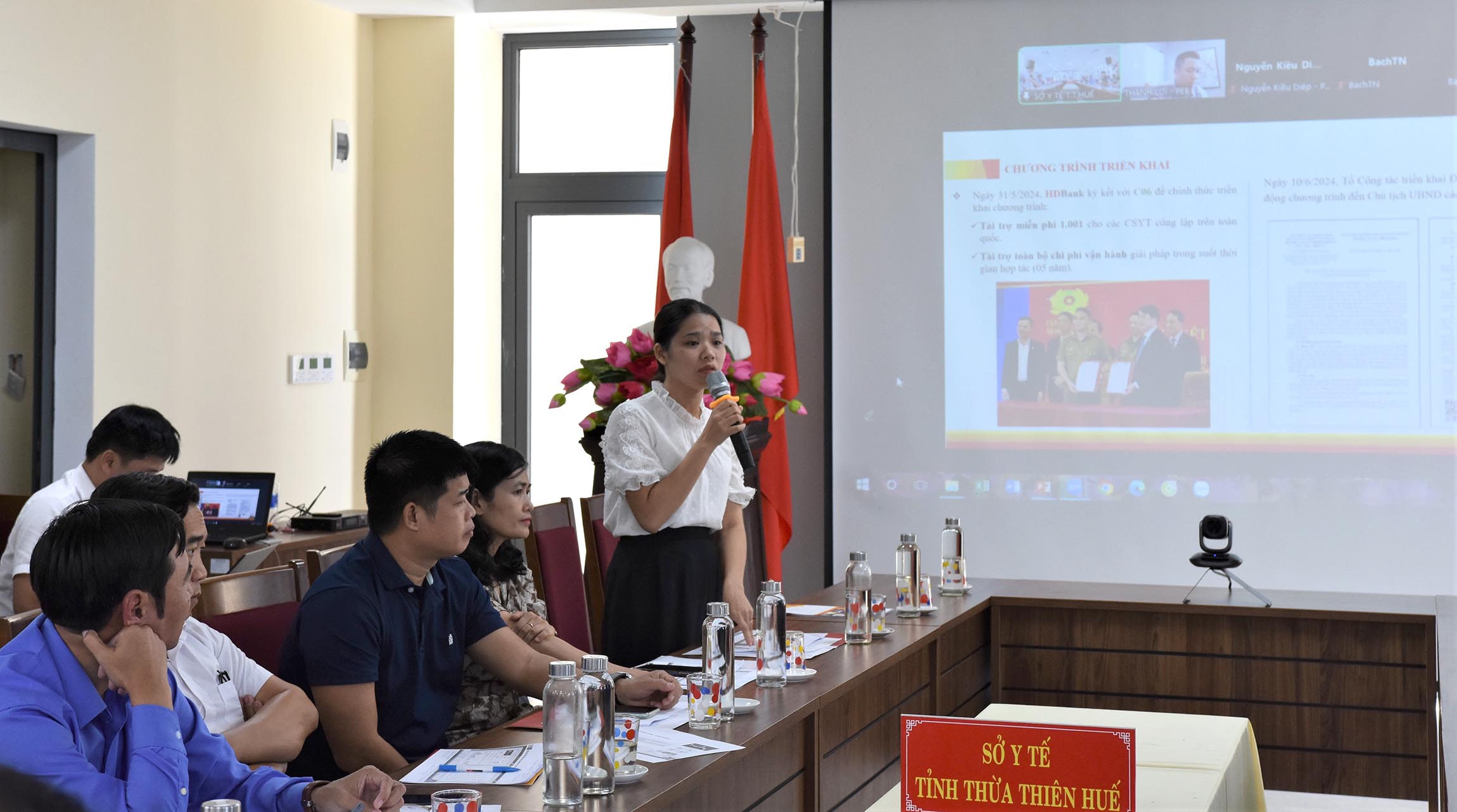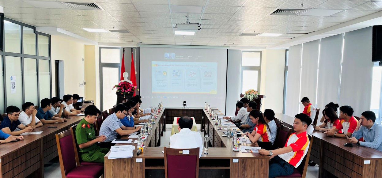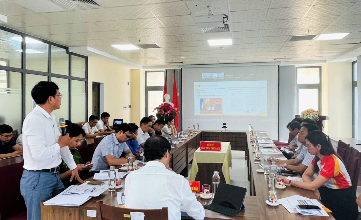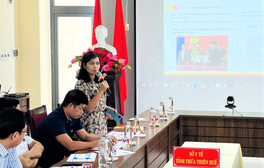 Đại diện lãnh đạo Ngân hàng HDBank chi nhánh Huế và Phòng PC06 - Công An tỉnh báo cáo việc phối hợp và tình hình triển khai Kiosk Y tế thông minh trên địa bàn tỉnh.