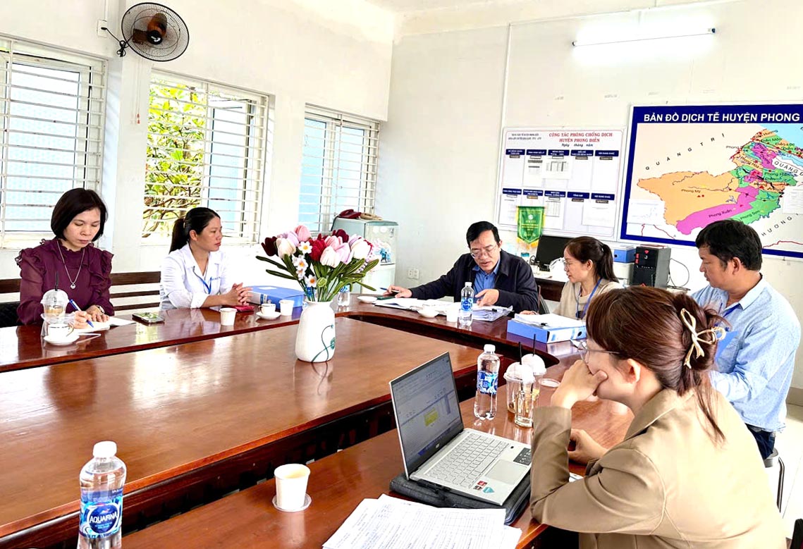 Sau khi nghe báo cáo hoạt động Y tế đã triển khai và tự đánh giá của TTYT Phong Điền, Đoàn công tác đã tiến hành kiểm tra hệ thống hồ sơ quản lý và đánh giá lại các hoạt động đơn vị đã thực hiện trong năm 2024: