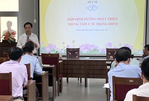 Chiều ngày 06-5-2022, PGS.TS Trần Kiêm Hảo - Bí thư Đảng ủy - Giám đốc Sở Y tế cùng Ban Giám đốc chủ trì cuộc họp về “Định hướng quy hoạch phát triển TTYT trọng điểm theo tinh thần Nghị quyết 08-NQ/TU về xây dựng Thừa Thiên Huế xứng tầm TTYT chuyên sâu của cả nước và khu vực Đông Nam Á giai đoạn 2021 - 2025 và tầm nhìn đến năm 2030 của Tỉnh ủy Thừa Thiên Huế”. Tham gia cuộc họp cùng có Trưởng/phó, chuyên viên các phòng chức năng Sở Y tế, Giám đốc, Trưởng phòng KHNV, KT-TC, TCCB và các thành viên liên quan của 9 TTYT huyện/thị/ thành phố.