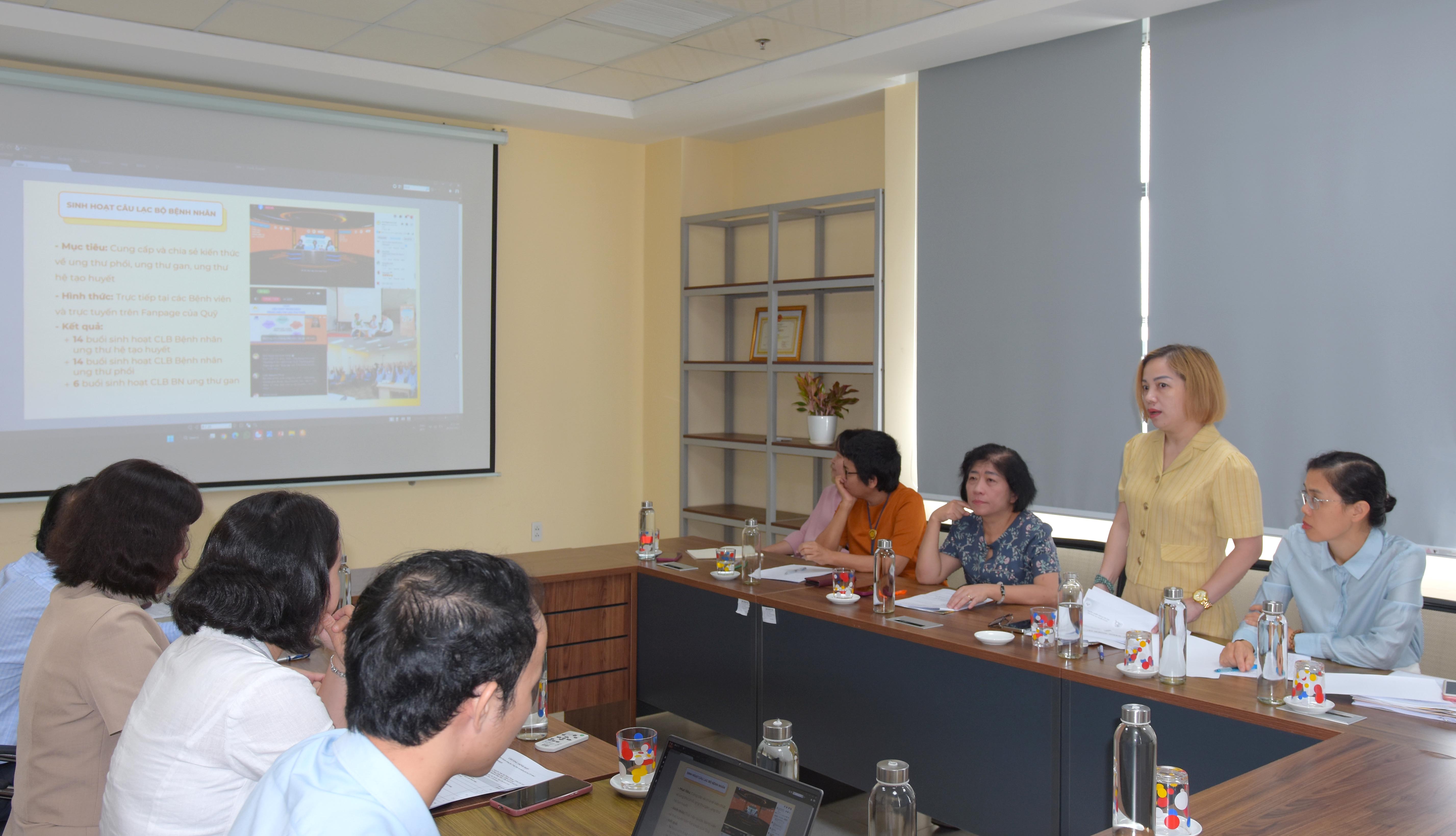 PGS.TS Trần Thị Thanh Hương - Giám đốc Quỹ Hỗ trợ bệnh nhân ung thư - Ngày Mai Tươi Sáng, Phó Viện trưởng Viện Ung thư quốc gia phát biểu tạu buổi làm việc