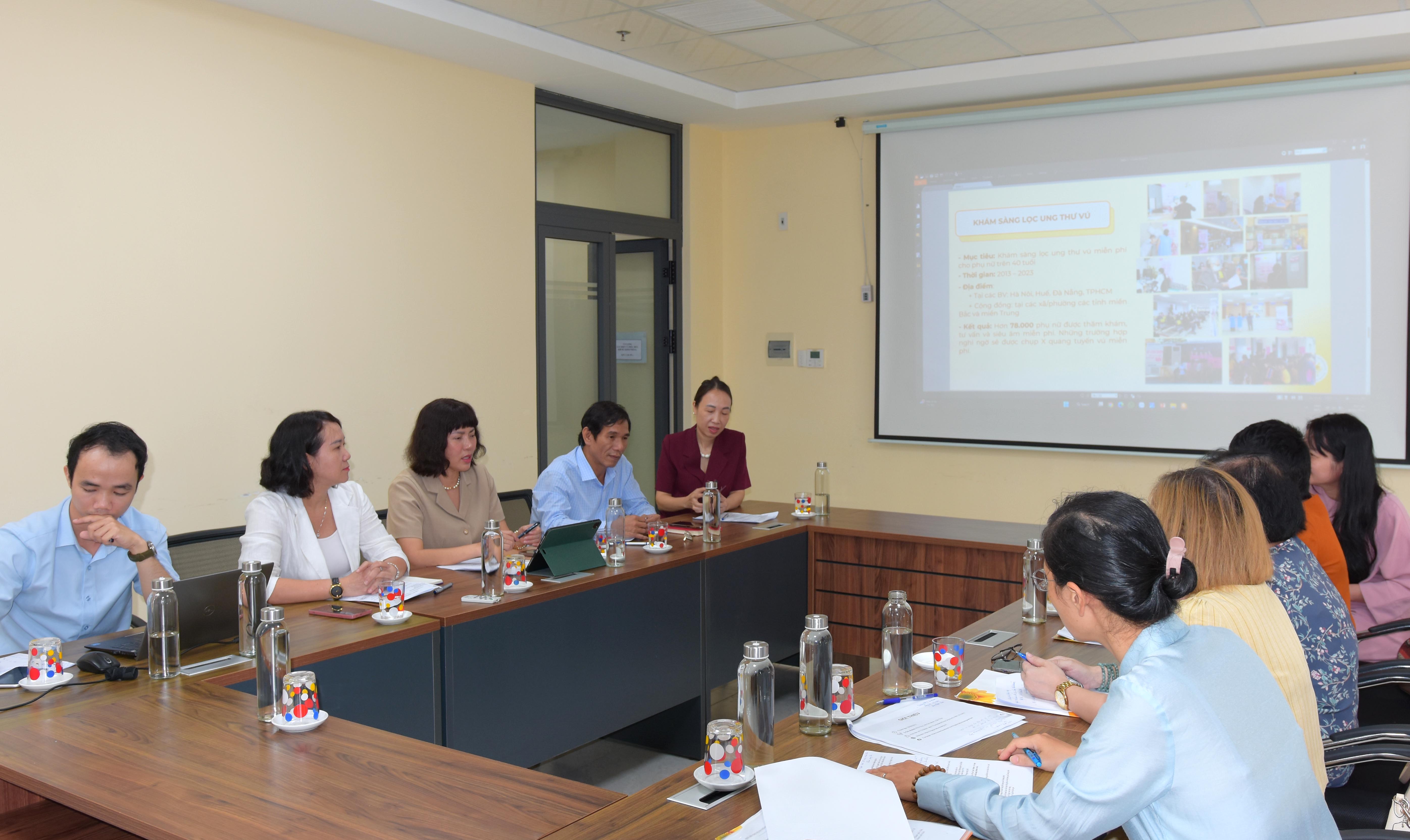 Hai bên cùng trao đổi, thảo luận kế hoạch triển khai khám sàng lọc Ung thư vú cho phụ nữ thành phố Huế.
