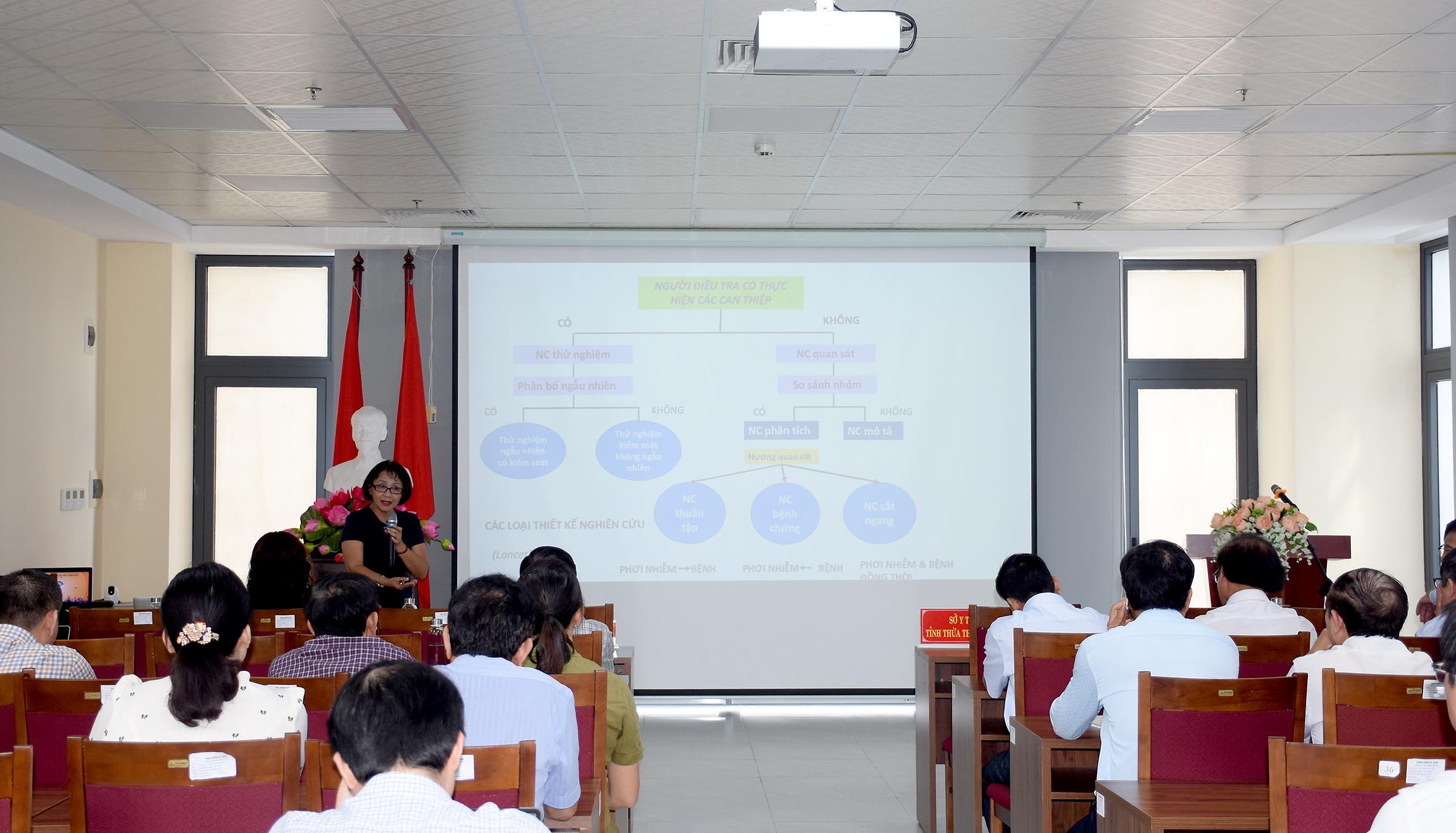 TS.BS. Đặng Thị Anh Thư - Giám đốc Viện Nghiên cứu sức khỏe cộng đồng; Trưởng khoa Khoa Y tế công cộng Trường Đại học Y Dược - Đại học Huế trình bày Quy trình tiến hành một NCKH.