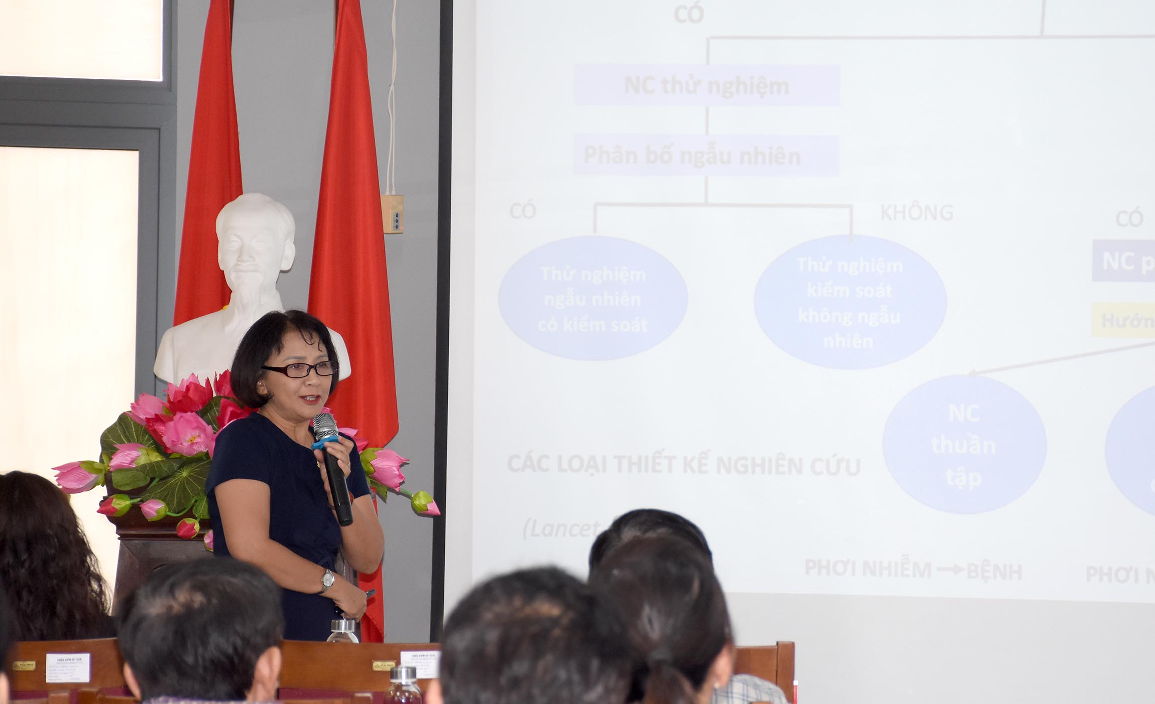 PGS.TS. Nguyễn Hoàng Lan - Giảng viên cao cấp Khoa Y tế công cộng, Trường Đại học Y Dược - Đại học Huế truyền đạt nội dung Một số lỗi thường gặp trong NCKH.