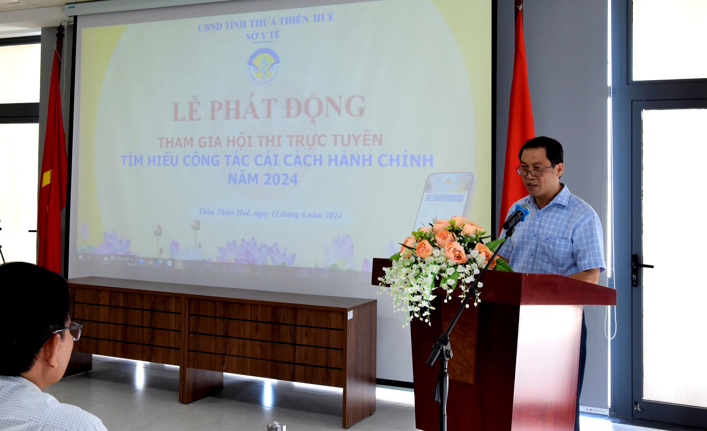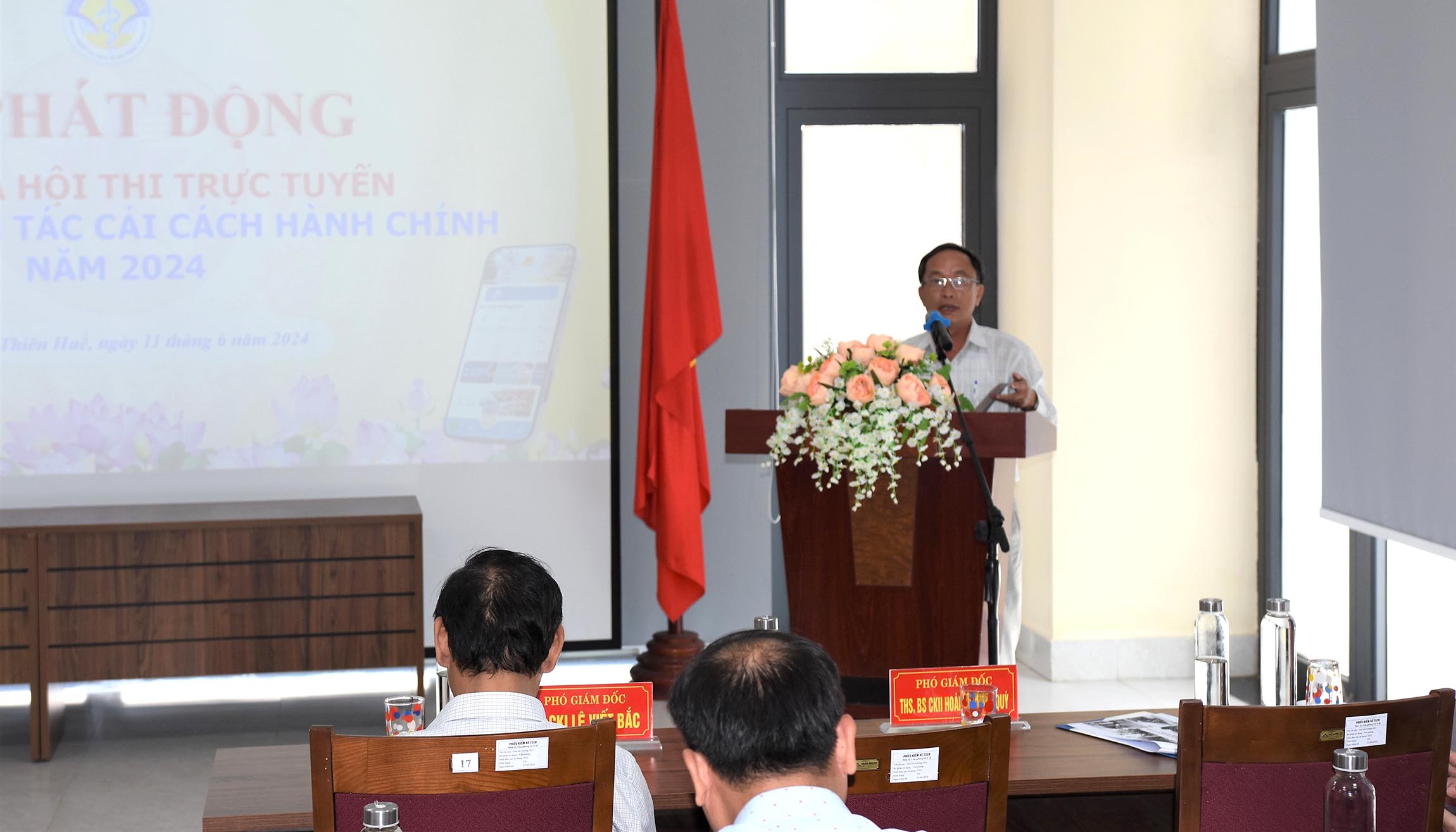 Phát biểu tại lễ phát động, PGS.TS.BS Trần Kiêm Hảo - Trưởng Ban Tổ chức hội thi của Sở Y tế nhấn mạnh: công tác cải cách hành chính (CCHC) vừa là mục tiêu, vừa là giải pháp quan trọng thúc đẩy phát triển sự nghiệp Y tế tỉnh nhà. Trong những năm qua, công tác CCHC của Ngành Y tế Thừa Thiên Huế đã được triển khai tích cực, hướng đến xây dựng nền hành chính minh bạch, chuyên nghiệp, hiện đại, hiệu quả, đồng bộ, hội nhập và thống nhất trong toàn Ngành, thực hiện tốt đạo đức công vụ và văn hóa công sở để phục vụ nhân dân ngày càng tốt hơn... Trong năm 2024, toàn Ngành quyết tâm phấn đấu xếp hạng chỉ số CCHC nằm trong top 5 của các cơ quan chuyên môn cấp tỉnh.