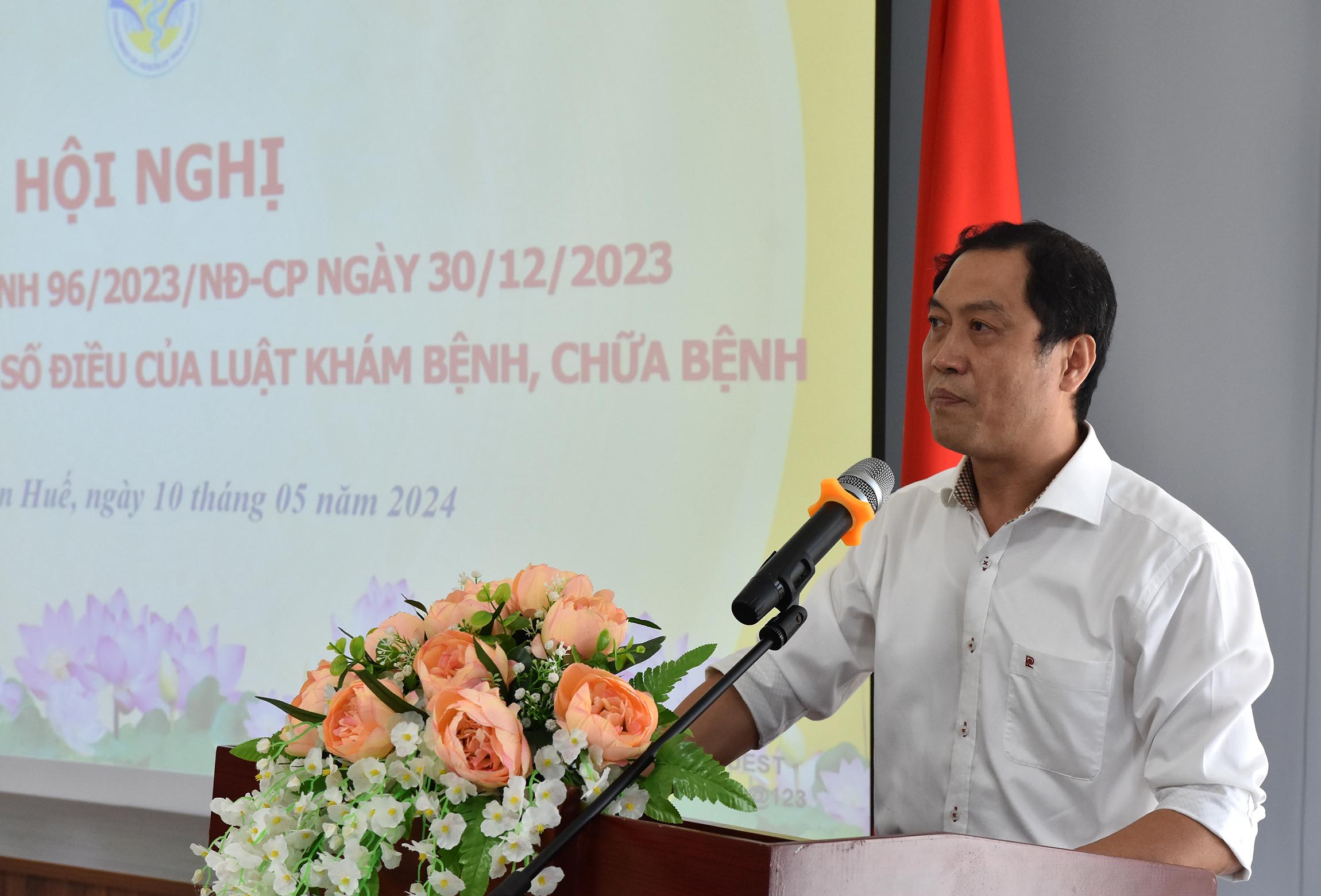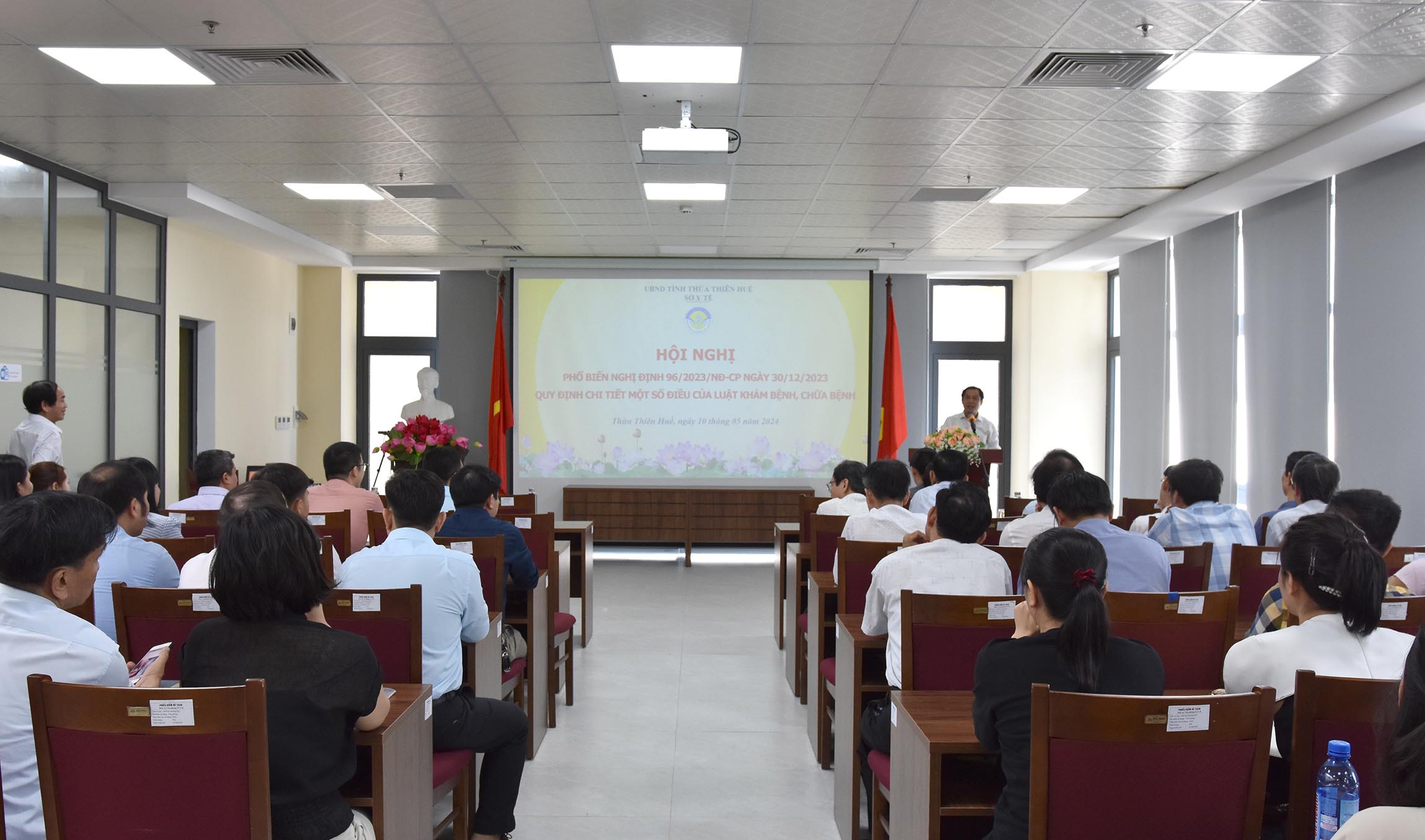 Chiều ngày 10/5/2024, Sở Y tế tổ chức “Hội nghị phổ biến Nghị định 96/2023/NĐ-CP ngày 30/12/2023 Quy định chi tiết một số điều của Luật Khám bệnh, Chữa bệnh”. PGS.TS.BS Trần Kiêm Hảo - Giám đốc Sở Y tế chủ trì hội nghị, tham gia hội nghị có Ban Giám đốc, lãnh đạo/chuyên viên các phòng và một số đơn vị trực thuộc Sở Y tế. Lãnh đạo cùng các bộ phận liên quan của các bệnh viện đa khoa/chuyên khoa, bệnh viện TTYT các huyện/thị xã/thành phố và bệnh viện ngoài công lập trên địa bàn tỉnh.