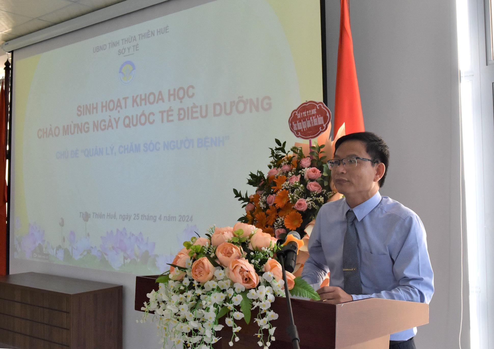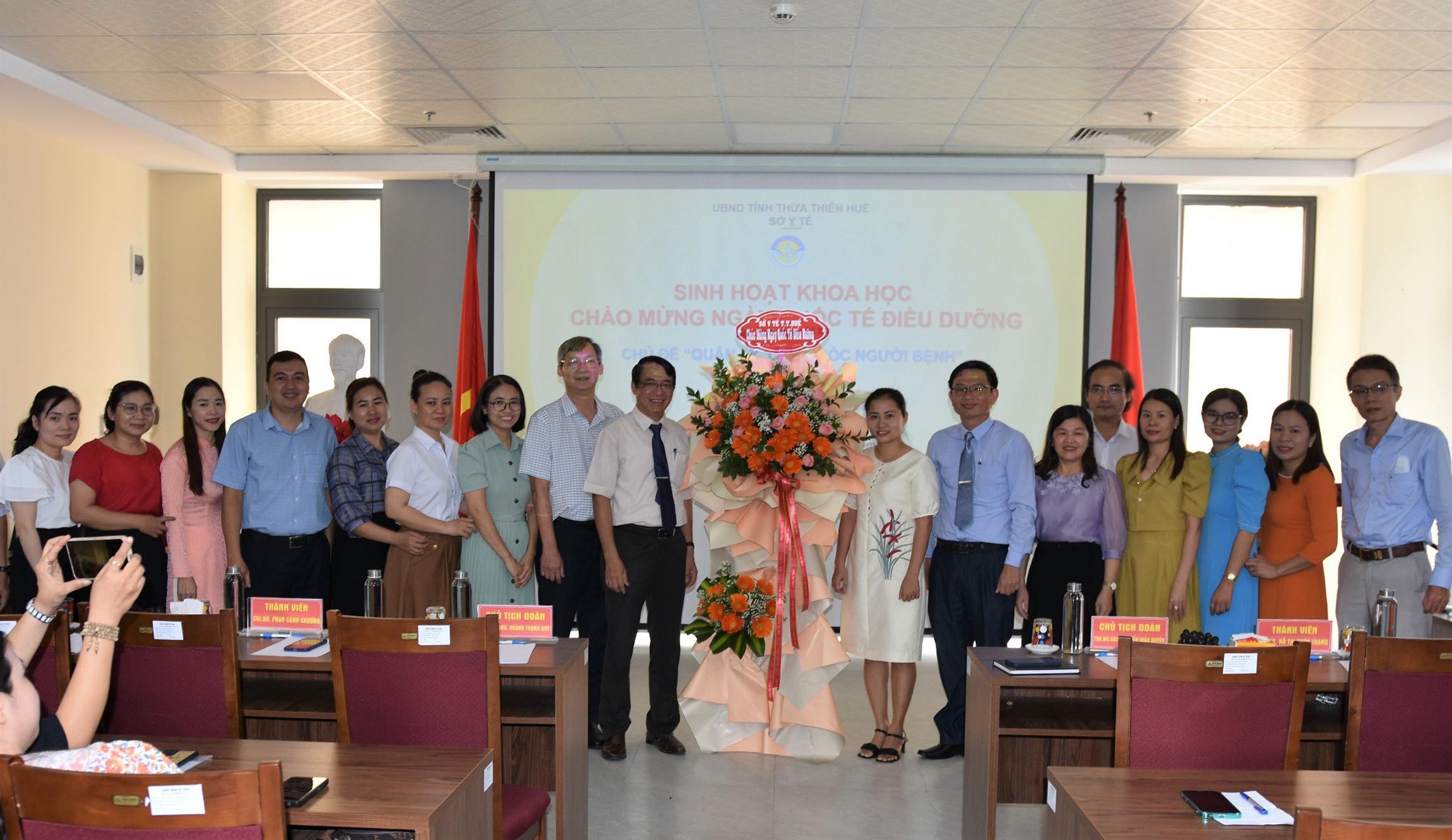 Lãnh đạo Sở tặng hoa chúc mừng “Sinh hoạt khoa học Chào mừng Ngày Quốc tế Điều dưỡng”.
