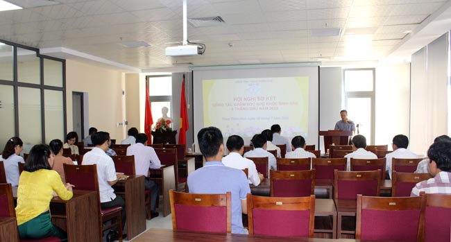 Toàn cảnh buổi sơ kết do BS.CKII Hoàng Trọng Quý - Phó Giám đốc sở Y tế chủ trì (ảnh trên)