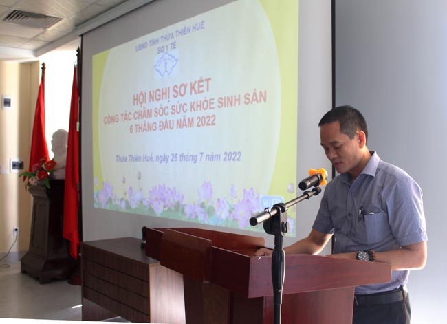 Sáng ngày 26/7, Sở Y tế tổ chức Hội nghị sơ kết đánh giá hoạt động Chăm sóc sức khỏe sinh sản (CSSKSS) 6 tháng đầu năm 2022. Chủ trì hội nghị có BS.CKII Hoàng Trọng Quý - Phó Giám đốc Sở Y tế, tham dự hội nghị có lãnh đạo phòng Nghiệp vụ Y, đại diện BV đa khoa TW Huế, BV Trường ĐH Y Dược Huế, lãnh đạo và các chuyên viên Trung tâm Kiểm soát bệnh tật tỉnh, BV Đa khoa Bình Điền, BV Giao thông vận tải Huế, Chi cục Dân số Kế hoạch hóa gia đình, Trung tâm Y tế các huyện/thị xã/thành phố.