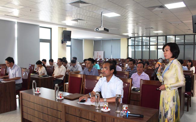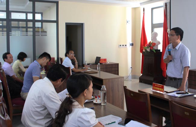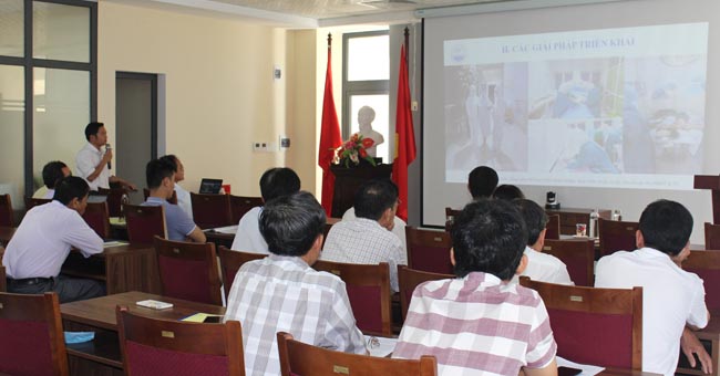 BS.CKI Hoàng Văn Tuấn – Phó Giám đốc bệnh viện GTVT Huế (người đứng) tham luận về “Thực trạng về công tác khám chữa bệnh sản phụ khoa tại bệnh viện GTVT”