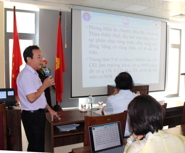 BS.CKI Trần Thiện Phước - Trưởng khoa SKSS, TTYT huyện Phong Điền tham luận về “Những khó khăn thách thức trong công tác bảo vệ BMTE/SKSS trên địa bàn huyện Phong Điền”