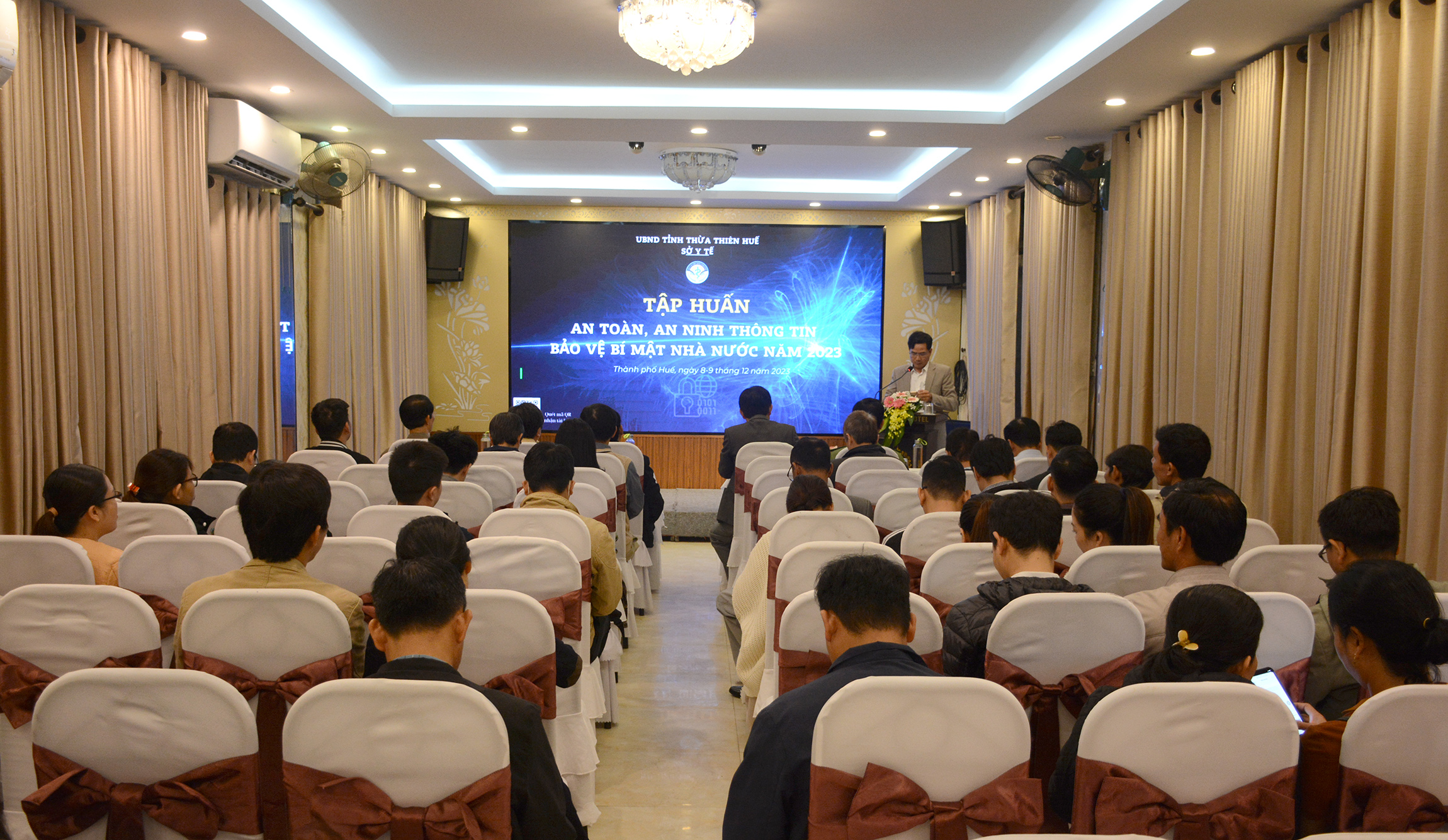 Trong hai ngày 8-9/12/2023, Sở Y tế tổ chức lớp Tập huấn an toàn, an ninh thông tin, bí mật nhà nước và triển khai các văn bản về Công nghệ thông tin, chuyển đổi số cho các bộ phận chuyên môn/nghiệp vụ của Sở Y tế và lãnh đạo, cán bộ phụ trách Công tác văn thư và cán bộ phụ trách Công nghệ thông tin của các TTYT huyện/thị xã/thành phố, các đơn vị trực thuộc và bệnh viện đa khoa/chuyên khoa tuyến tỉnh.