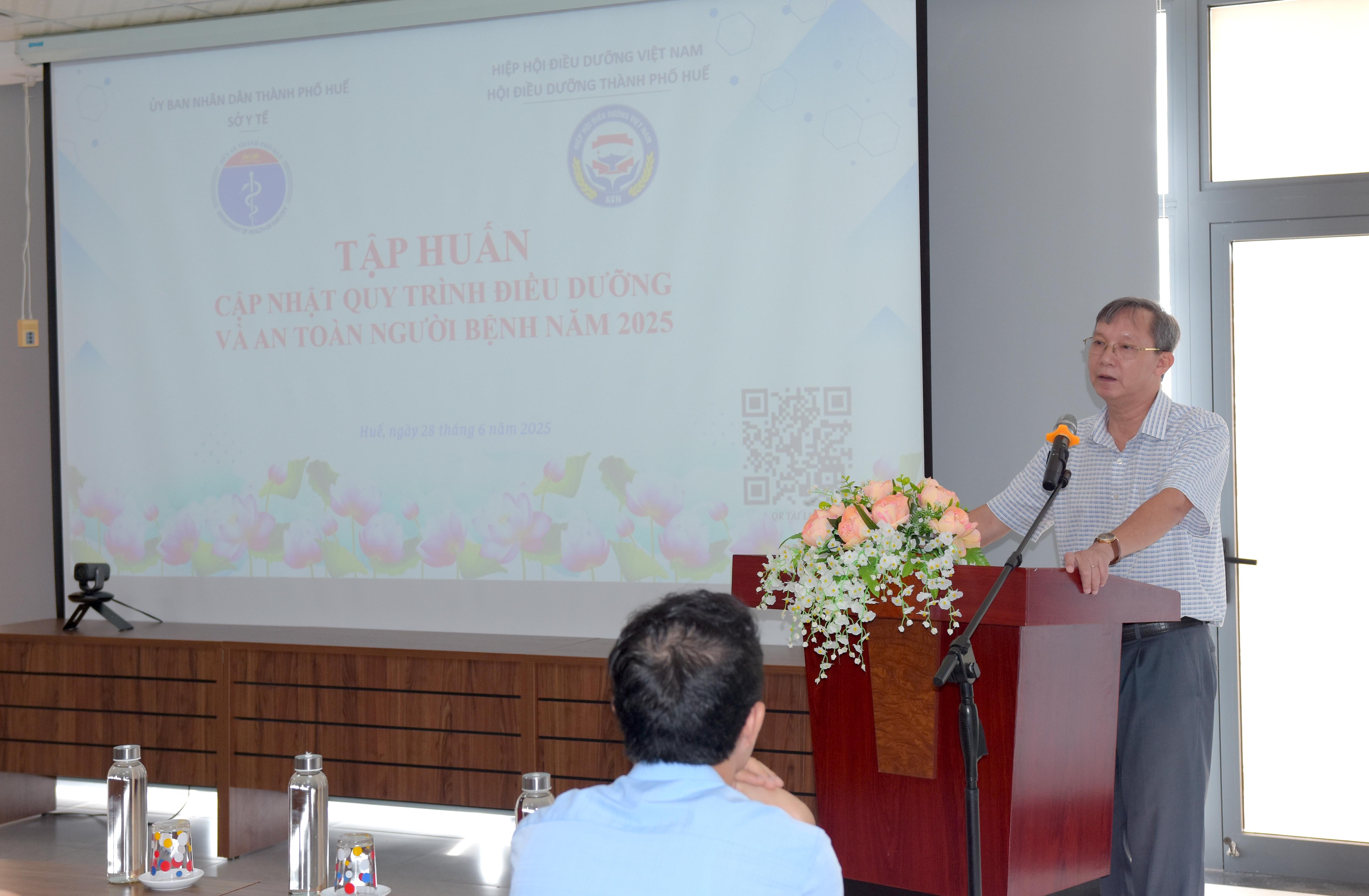 Ngày 28/6, Sở Y tế thành phố Huế phối hợp với Hội Điều dưỡng thành phố Huế tổ chức lớp Tập huấn cập nhật Quy trình điều dưỡng và An toàn người bệnh năm 2025 cho các bệnh viện thuộc Sở Y tế thành phố Huế quản lý. Quy trình điều dưỡng và An toàn người bệnh là hai yếu tố then chốt trong việc cung cấp dịch vụ chăm sóc sức khỏe chất lượng.