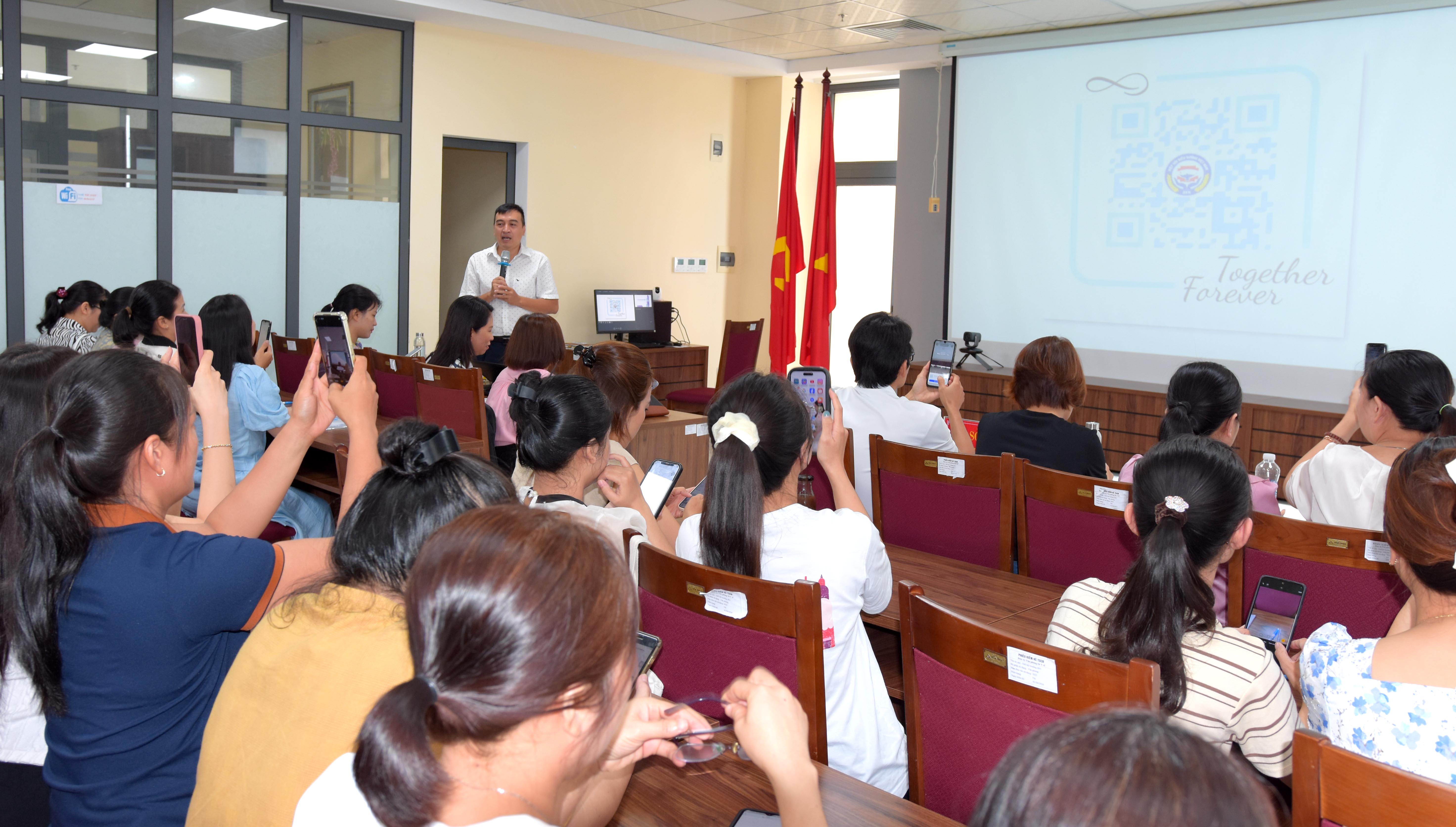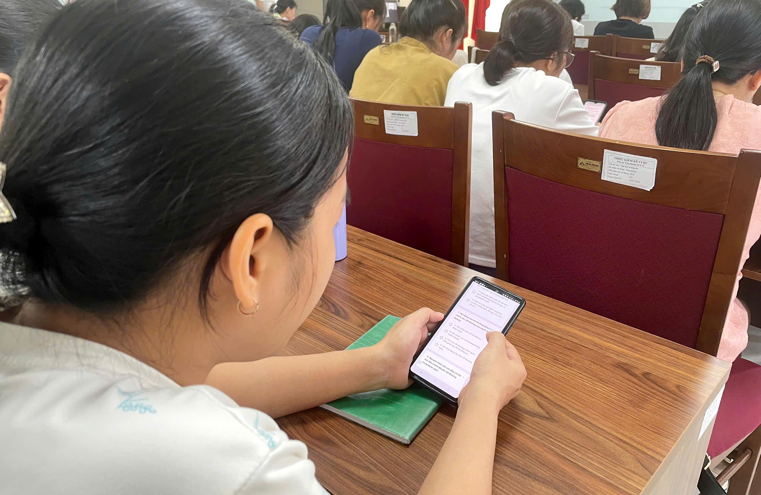 Lớp tập huấn đã sử dụng công nghệ quét mã QR bằng điện thoại thông minh để truy cập bài kiểm tra đầu vào đối với các học viên trong Chương trình đào tạo liên tục về Quy trình kỹ thuật điều dưỡng và An toàn người bệnh trước khoá tập huấn.