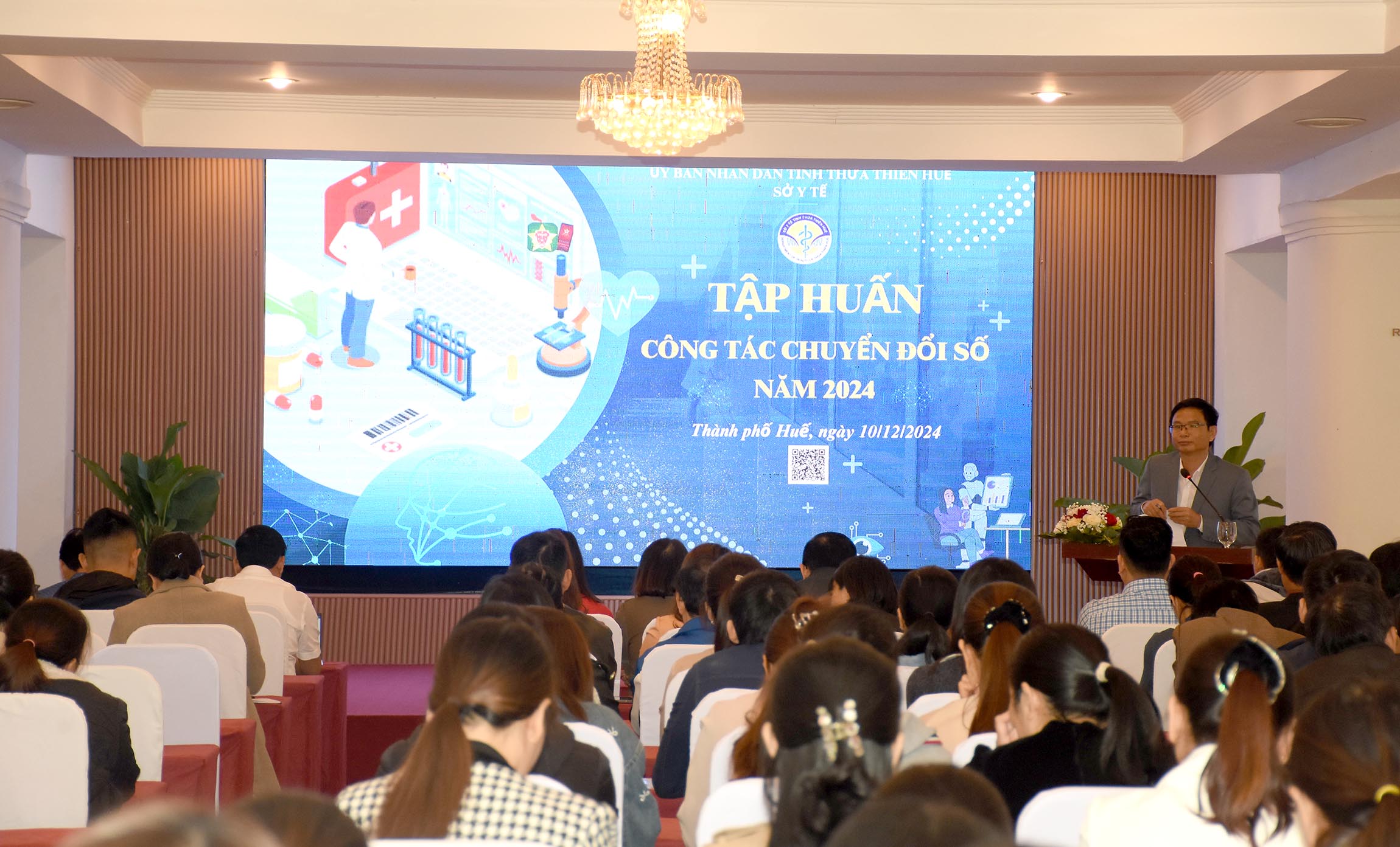 Trong ngày 10/12, Sở Y tế tổ chức Tập huấn công tác Chuyển đổi số, định hướng và triển khai một số nội dung trong ứng dụng Công nghệ thông tin và Chuyển đổi số ngành Y tế Thừa Thiên Huế. Tham dự lớp tập huấn có Ban lãnh đạo Sở Y tế, công chức Văn phòng Sở Y tế, đại diện Lãnh đạo, cán bộ phụ trách/chuyên trách công tác công nghệ thông tin/công tác văn thư của 26 đơn vị trực thuộc Sở Y tế và đại diện cán bộ Trạm Y tế xã/phường/thị trấn trên địa bàn toàn tỉnh.