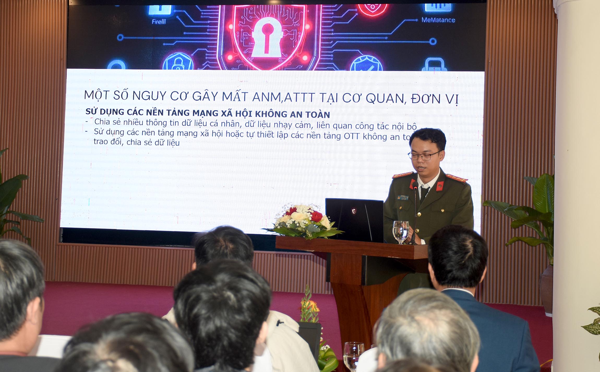 Các giảng viên/báo cáo viên Phòng PA05 và Trung tâm Giám sát điều hành đô thị thông minh trình bày các nội dung về An ninh mạng và An toàn thông tin.