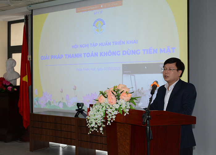 Thực hiện Công văn số 10587/UBND-DL của UBND tỉnh Thừa Thiên Huế, ngày 02-02-2023 Sở Y tế tổ chức Hội nghị tập huấn trực tiếp và trực tuyến “Triển khai giải pháp thanh toán không dùng tiền mặt”. Giảng viên và hướng dẫn tập huấn gồm có lãnh đạo và các cán bộ chuyên môn của Trung tâm Giám sát Điều hành đô thị thông minh (IOC) tỉnh, Trung tâm Thanh toán trực tuyến của nhà Viễn thông FPT và Đội Phản ứng nhanh (PUN75) tỉnh. Tham dự tập huấn có lãnh đạo và chuyên viên các Phòng của Sở Y tế; lãnh đạo, bộ phận kế toán, cán bộ công nghệ thông tin của TTYT 9 huyện/thị xã/thành phố, 9 BV Đa khoa/Chuyên khoa tuyến tỉnh, Phòng Bảo vệ sức khỏe cán bộ và Trung tâm Kiểm soát bệnh tật tỉnh.