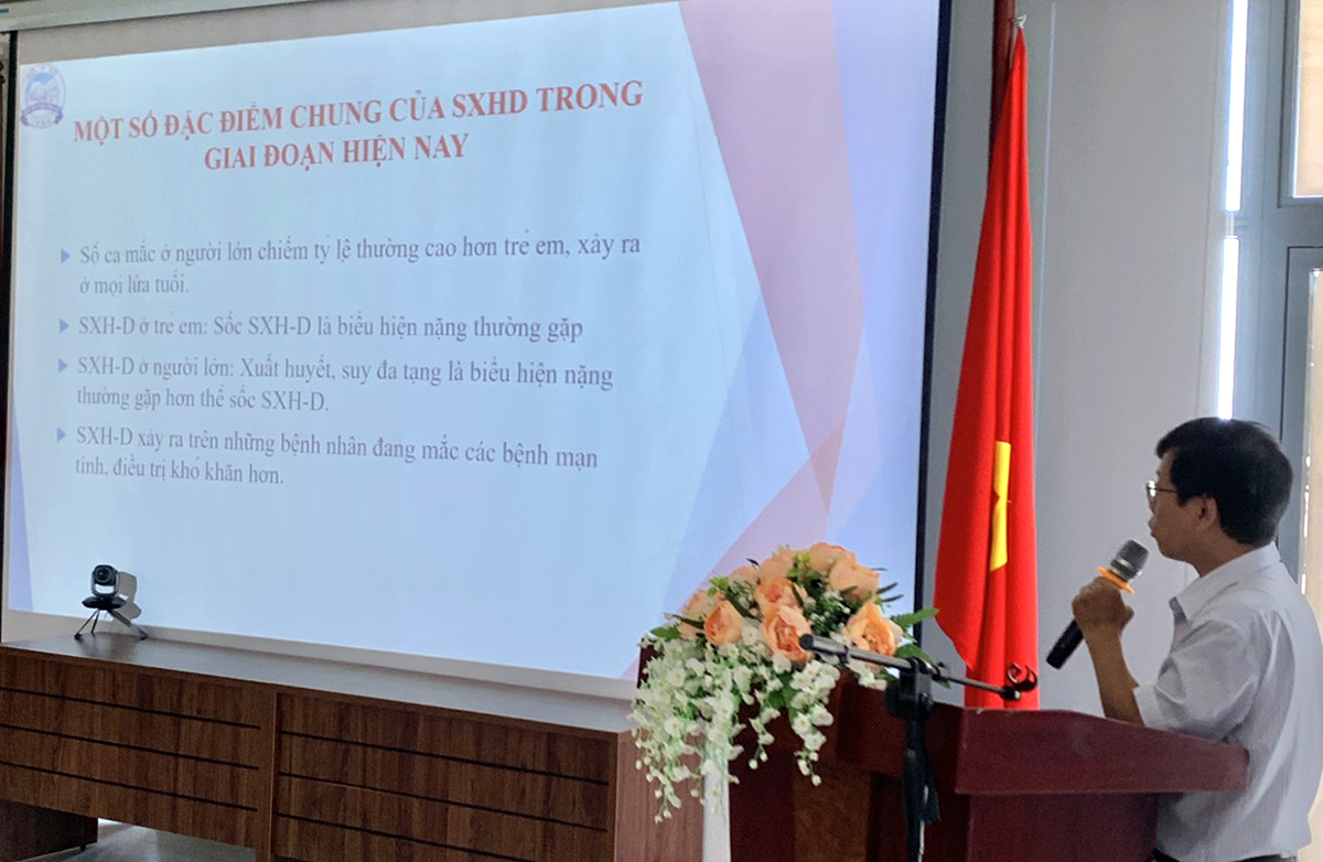 Tại buổi tập huấn, các báo cáo viên đã cập nhật các nội dung theo Quyết định số 2760/QĐ-BYT ngày 04/7/2023 của Bộ Y tế“Về việc ban hành hướng dẫn chẩn đoán, điều trị Sốt xuất huyết Dengue”, quyết định này được áp dụng tại các cơ sở khám bệnh, chữa bệnh trên toàn quốc. Theo đó, báo cáo viên trình bày về đại cương, diễn biến lâm sàng, chẩn đoán, phân độ và điều trị SXHD. Đồng thời phân tích rõ những nội dung hướng dẫn điều trị, các phụ lục ban hành kèm theo Quyết định gồm: các giai đoạn lâm sàng; phân độ, phân nhóm SXHD; sơ đồ xử trí dấu hiệu cảnh báo ở trẻ em và người lớn; xử trí suy gan cấp; sơ đồ truyền dịch/chống sốc cho trẻ em và người lớn; Điều trị SXHD cho phụ nữ có thai; phát hiện và xử trí khi tuyến cơ sở có dịch SXHD; tiêu chuẩn hội chẩn; tóm tắt điều trị; phân loại chuyển tuyến; nuôi dưỡng người bệnh; hướng dẫn quy trình kỹ thuật chăm sóc người SXH; hướng dẫn tư vấn bà mẹ về nguyên nhân, dấu hiệu nhận biết, cách xử trí khi trẻ mắc bệnh SXHD, các biện pháp bảo vệ và phòng ngừa cho trẻ và gia đình an toàn trong mùa dịch bệnh Sốt xuất huyết…/.