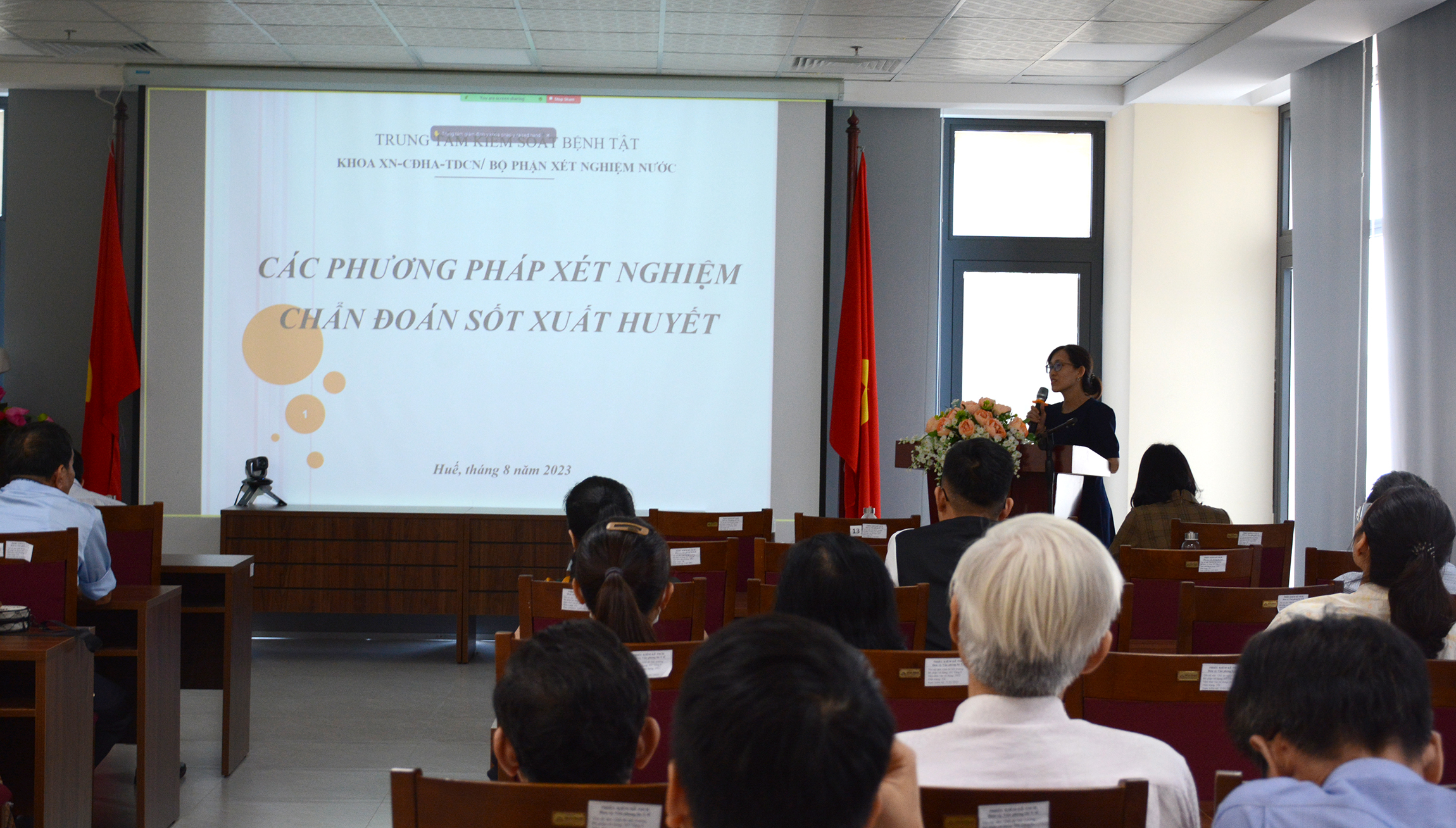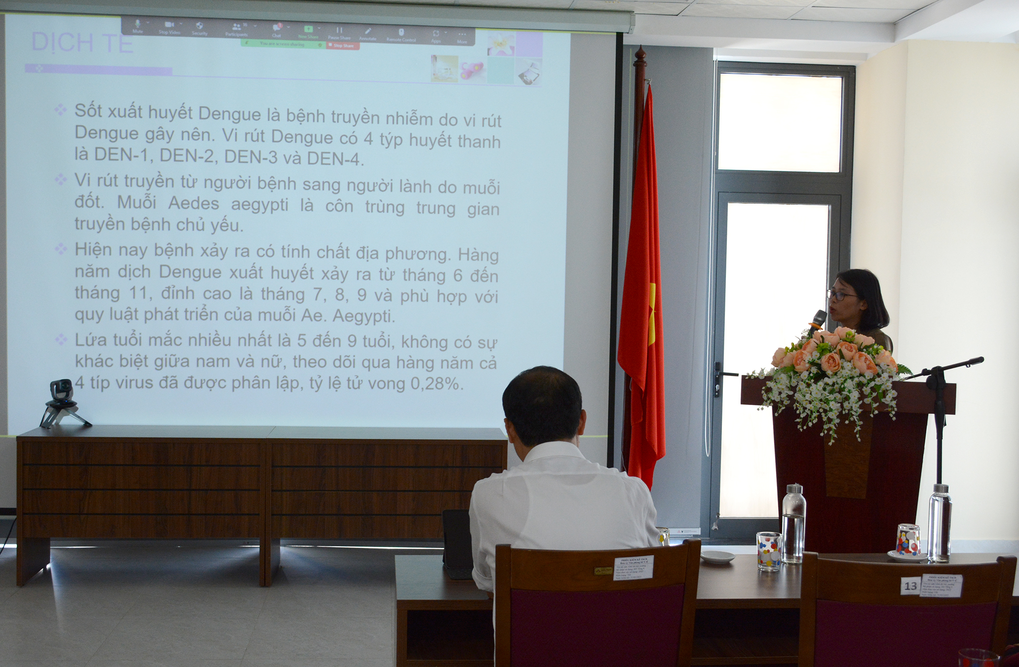 Ths Nguyễn Thị Túy Hà - Trưởng Khoa XN-CĐHA-TDCN Trung tâm Kiểm soát bệnh tật trình bày các phương pháp xét nghiệm chẩn đoán SXHD.