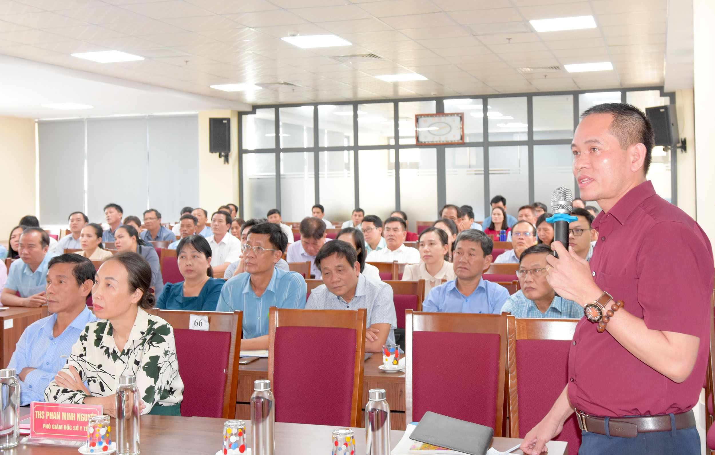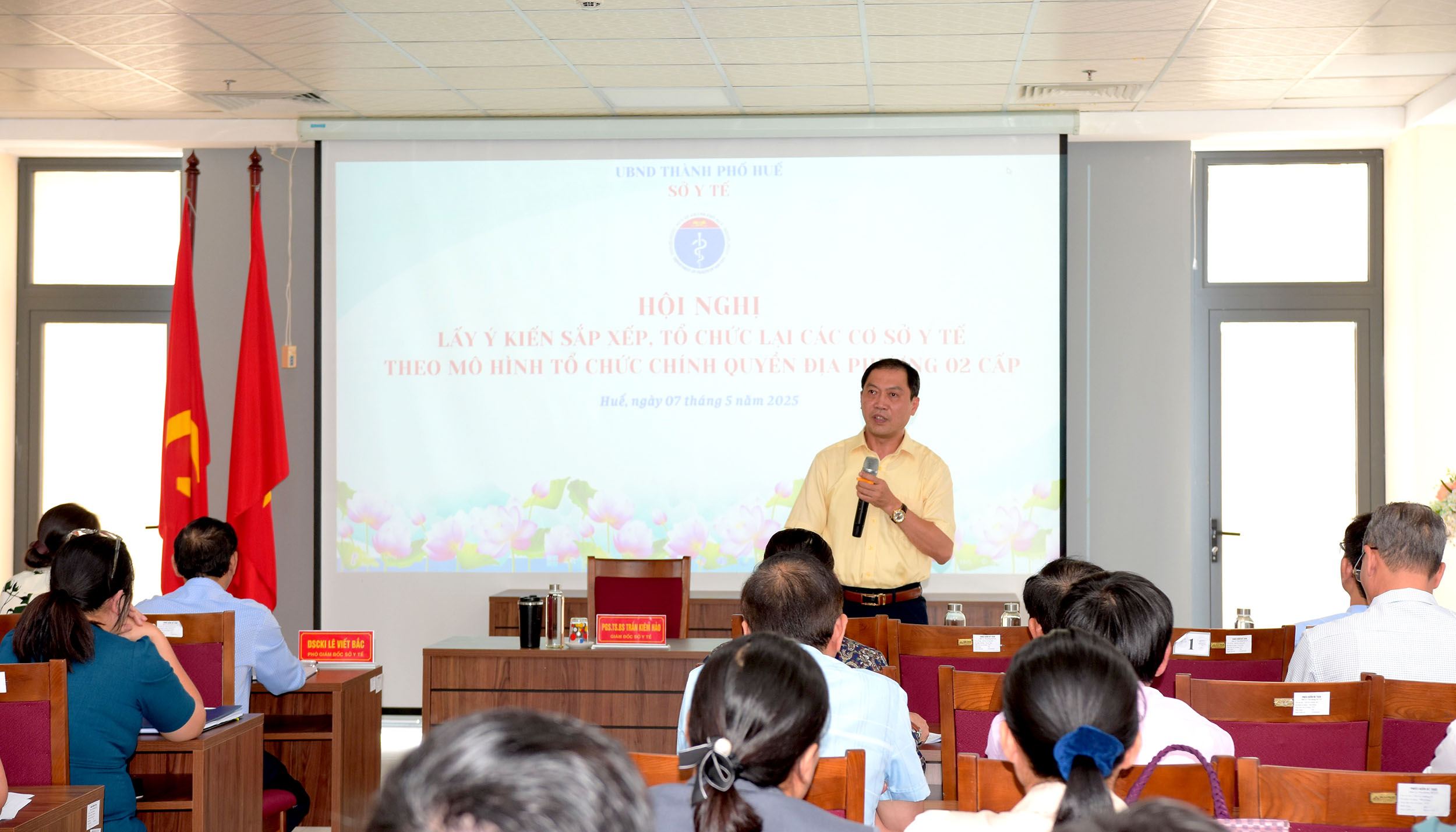 Ngày 7/5, sở Y tế tổ chức "Hội nghị lấy ý kiến sắp xếp tổ chức lại các đơn vị hành chính các cấp theo mô hình tổ chức chính quyền địa phương 2 cấp". PGS.TS Trần Kiêm Hảo - Giám đốc sở Y tế chủ trì hội nghị, tham dự hội nghị có các Phó Giám đốc sở Y tế, lãnh đạo các phòng của Sở Y tế, lãnh đạo 9 TTYT quận/huyện/thị xã và đại diện 40 trạm Y tế được sắp xếp tổ chức lại.