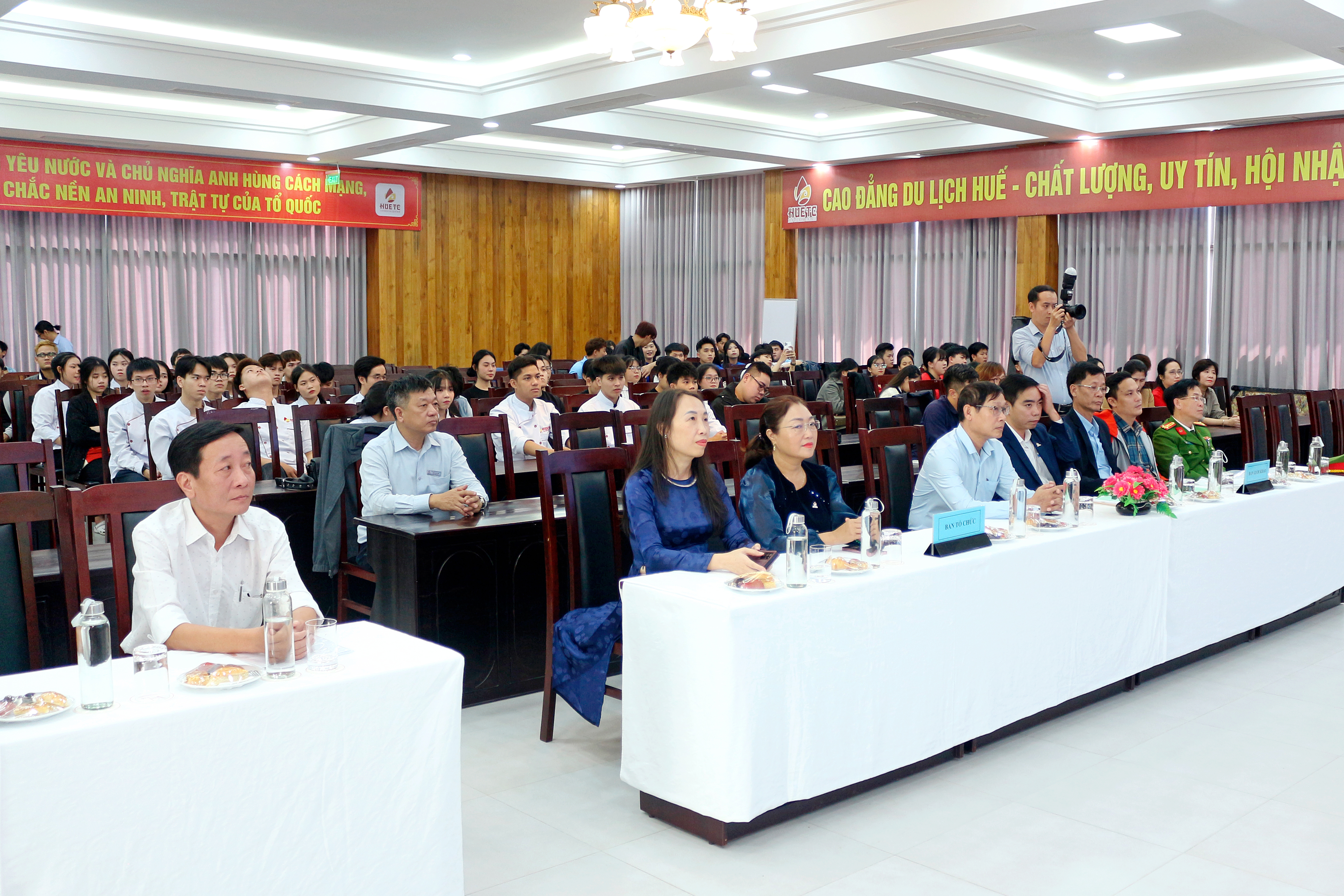 Tham dự chương trình có bà Phan Minh Nguyệt – Phó Giám đốc Sở Y tế, ông Phạm Bá Hùng – Hiệu trưởng Trường Cao đẳng Du lịch Huế, cùng đại diện các phòng, ban liên quan và đông đảo cán bộ, giảng viên, học sinh, sinh viên của nhà trường.