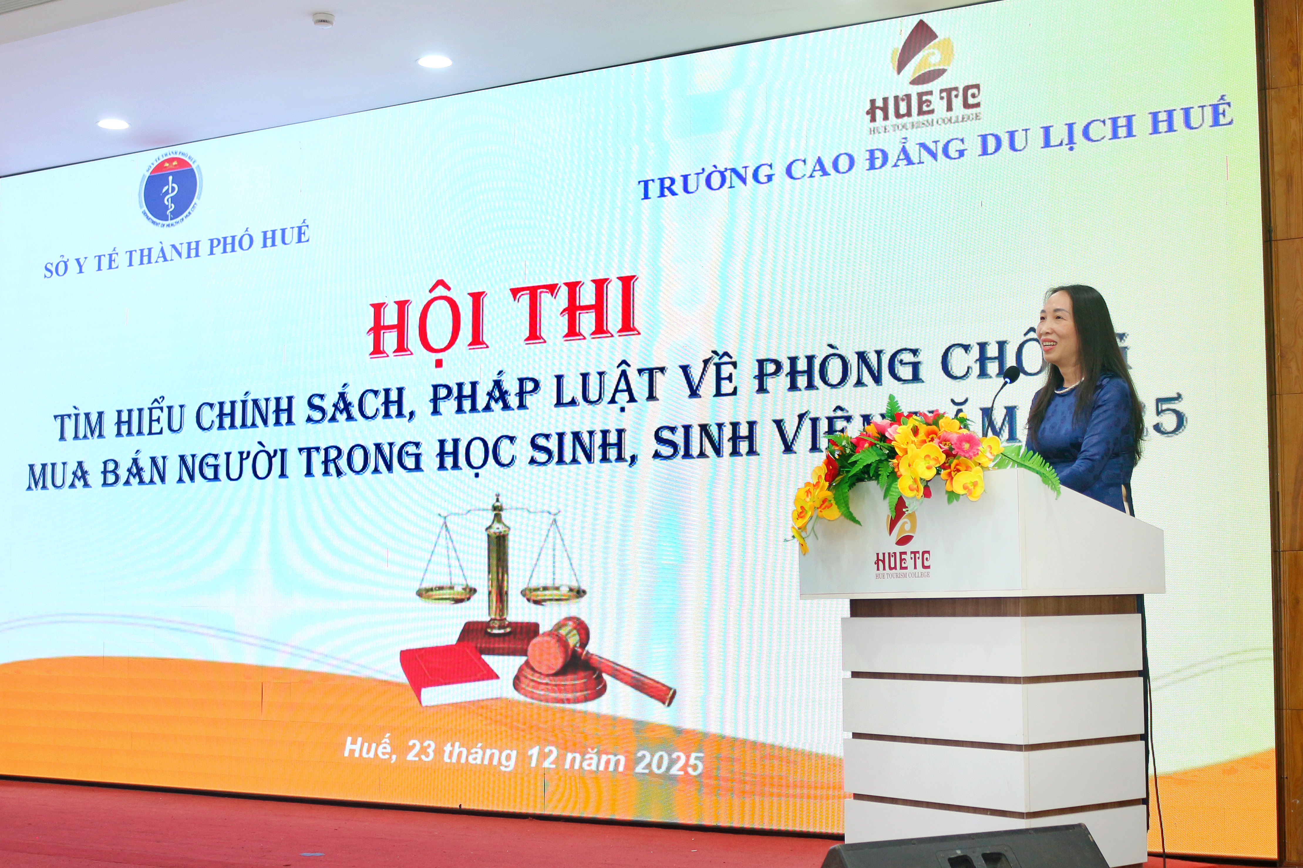 Chiều ngày 23/12/2025, tại Trường Cao đẳng Du lịch Huế, Sở Y tế thành phố phối hợp với nhà trường tổ chức khai mạc Hội thi “Tìm hiểu chính sách, pháp luật về phòng, chống mua bán người trong học sinh, sinh viên năm 2025”.