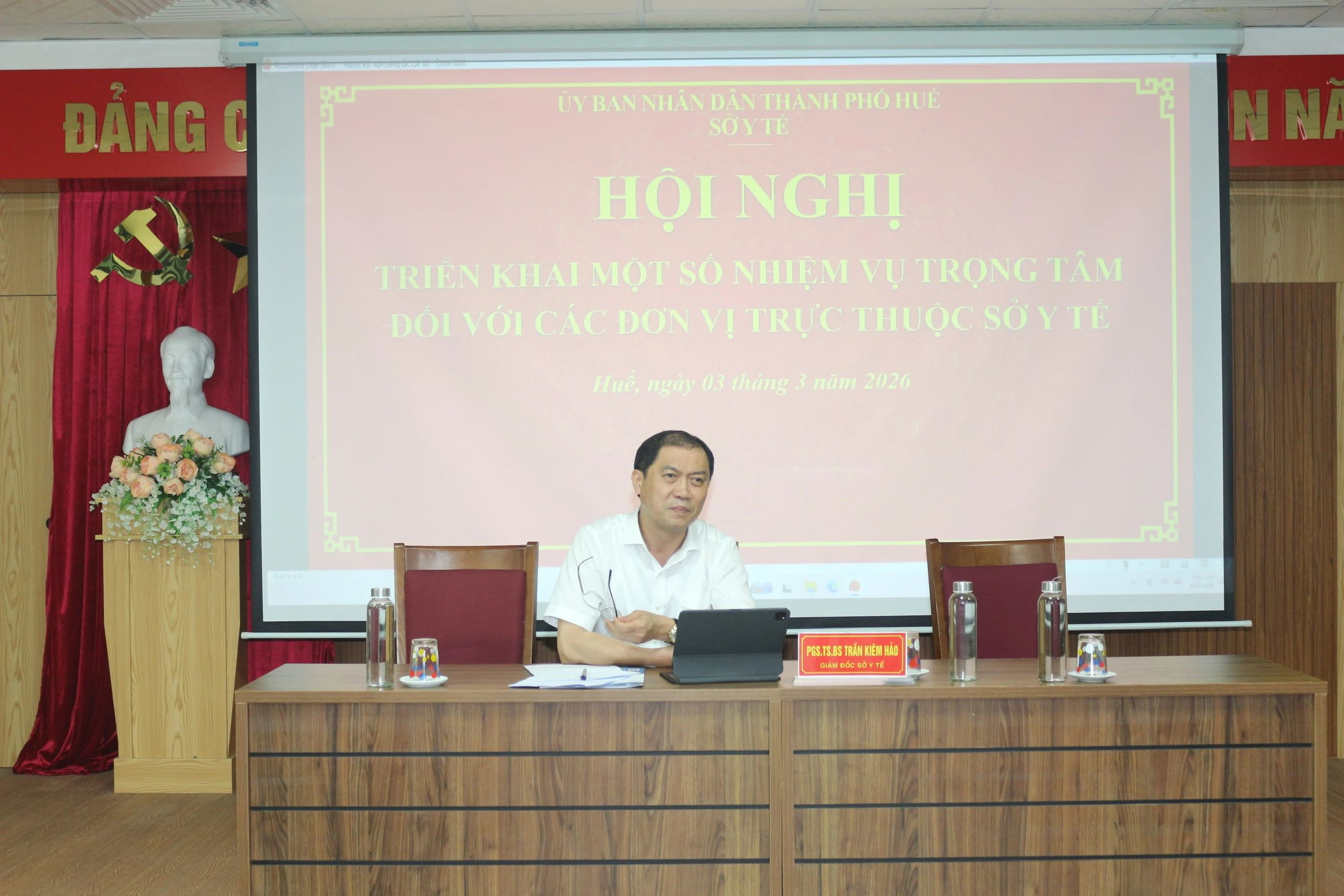 Chiều 03/3/2026, Sở Y tế thành phố Huế tổ chức hội nghị triển khai một số nhiệm vụ trọng tâm năm 2026 đối với các đơn vị trực thuộc. Hội nghị do PGS.TS.BS Trần Kiêm Hảo – Giám đốc Sở chủ trì, với sự tham dự của Ban Giám đốc Sở, lãnh đạo các phòng chuyên môn và đại diện 24 đơn vị trực thuộc.