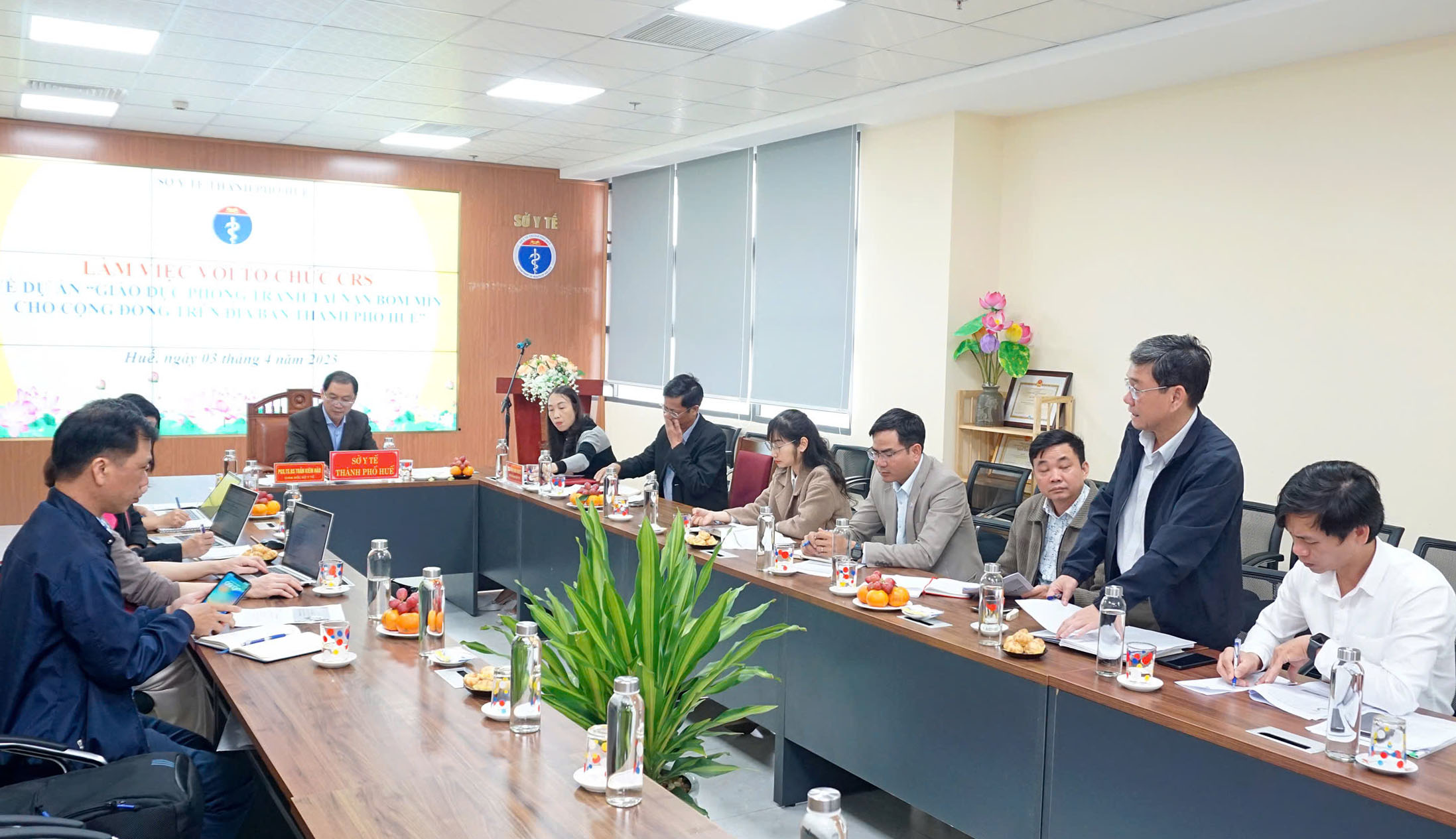 Ngày 3/4/2025, PGS.TS.BS Trần Kiêm Hảo - Giám đốc sở Y tế cùng các Phó Giám đốc, Lãnh đạo Văn phòng Sở, Phòng BTXH, phòng KH-TC, Kế toán trưởng và các bộ phận liên quan tiếp và làm việc với Bà Nguyễn Thị Minh Châu - Quản lý chương trình Hành động bom mìn, cùng các thành viên dự án “Giáo dục phòng tránh tai nạn bom mìn” do tổ chức Catholic Relief Services - United States Conference of Catholic Bishops (CRS-Hoa Kỳ) tài trợ.
