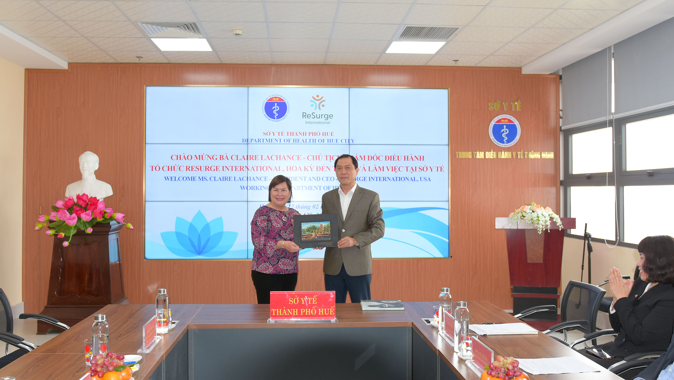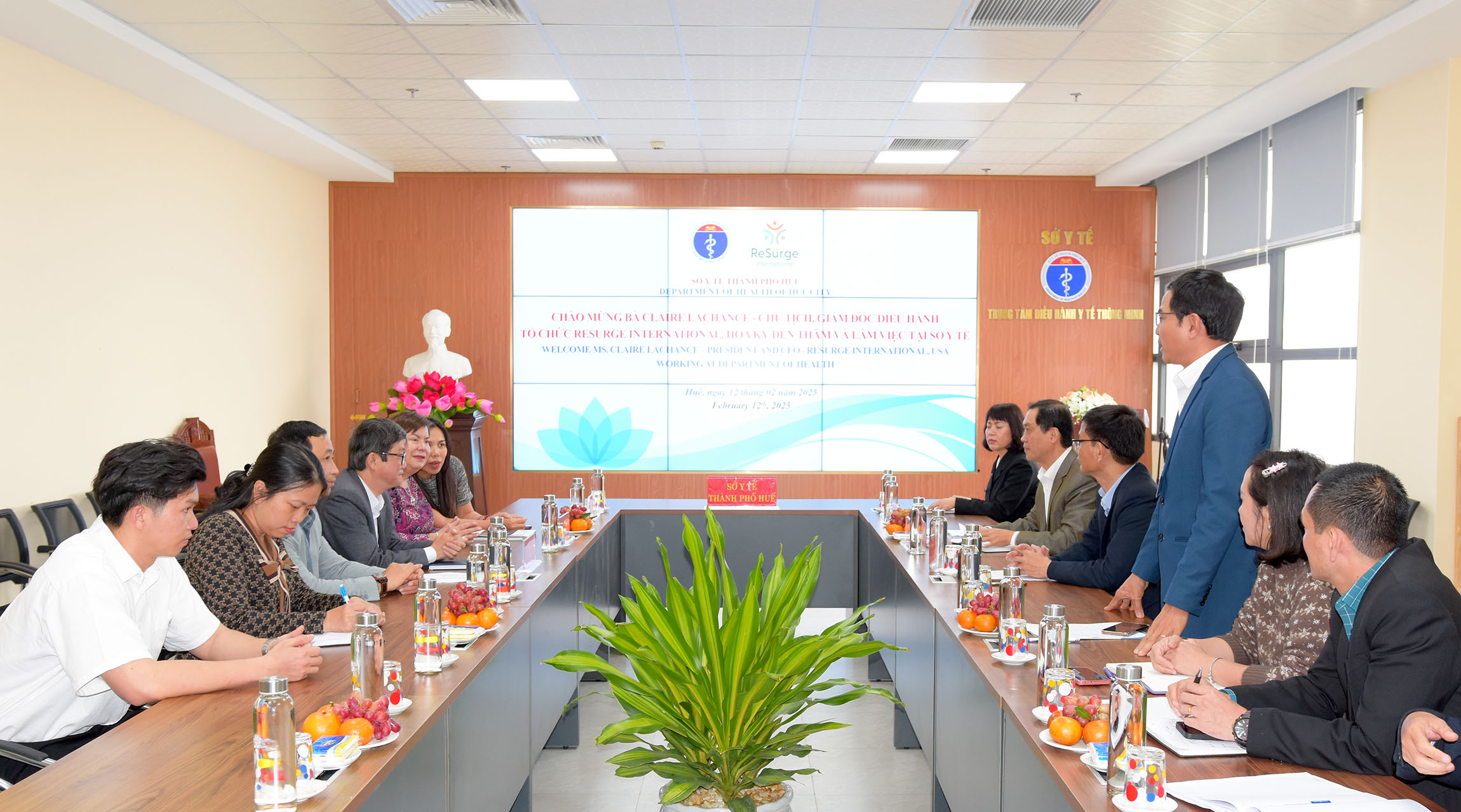 Sáng ngày 12/2 tại Văn phòng Sở Y tế, PGS.TS.BS - Giám đốc Sở Y tế Trần Kiêm Hảo cùng các Phó giám đốc, lãnh đạo các phòng của sở Y tế và BSCKII Lê Đức Thịnh - Giám đốc BV Răng Hàm Mặt Huế đã tiếp và làm việc với bà Claire Lachance - Chủ tịch, Giám đốc điều hành Tổ chức ReSurge International Hoa Kỳ.