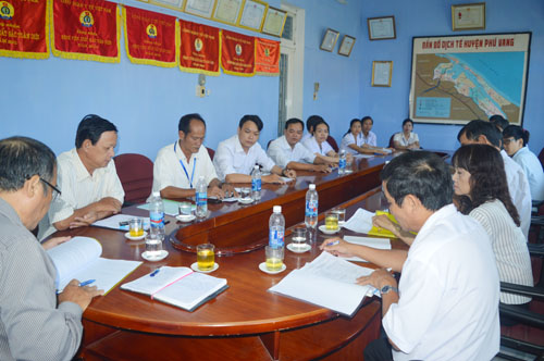 Đoàn đã nghe Ban giám đốc TTYT huyện báo cáo tình hình bệnh trên địa bàn và các hoạt động phòng phòng chống dịch đã triển khai thực hiện. Trong 9 tháng đầu năm 2018, tình hình dịch bệnh trên địa bàn ghi nhận chủ yếu là bệnh sốt suất huyết có 21 trường hợp, trong đó có 19 trường hợp ca bệnh ngoại lai. Qua kết quả kiểm tra cho thấy địa phương đã làm tốt công tác truyền thông phòng, chống dịch, sau hội nghị Phòng chống dịch của huyện, 100% xã, thị trấn đã triển khai hội nghị và tổ chức ký cam kết phòng chống dịch đến các ban ngành, đoàn thể và người dân (100% trường học, trên 90% hộ dân tham gia ký cam kết), đã thực hiện tốt công tác giám sát dịch và triển khai 3 đợt thau vét bọ gậy, vệ sinh môi trường và phun hóa chất chủ động tại các địa bàn có nguy cơ xãy ra dịch bệnh, các trường hợp ca bệnh đã được phát hiện và xữ lý kịp thời. Bảo đảm cơ số hóa chất, phương tiện phòng chống dịch từ huyện đến các xã, thị trấn. Huyện đã tổ chức hội nghị sơ kết công tác phòng chống dịch 8 tháng đầu năm 2018. Bước vào năm học mới TTYT huyện đã phối hợp Phòng GD-ĐT huyện đã tổ chức họp ký kết triển khai kế hoạch liên ngành về Y tế trường học và kế hoạch chủ động phòng chống dịch trong trường học năm học 2018 -2019. Sau khi làm việc tại TTYT, đoàn đã đi kiểm tra tình hình thực tế tại một số khoa phòng, trạm y tế xã, thị trấn trên địa bàn huyện.