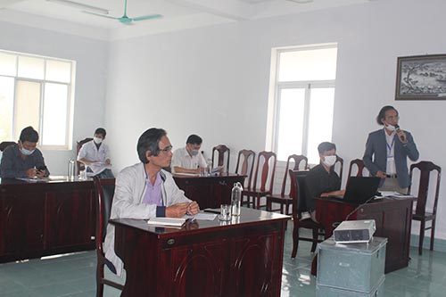 BSCKII. Hoàng Văn Thám- Giám đốc Bệnh viện Đa khoa Chân Mây trình bày Phương án bệnh viện dã chiến, đại diện các phòng chức năng Sở Y tế tham gia đề xuất các giải pháp, phương án kỹ thuật phù hợp, trang thiết bị, thuốc men….để đáp ứng yêu cầu đặt ra.