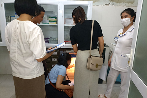 Cán bộ phòng nghiệp vụ Dược và CDC tỉnh kiểm tra tủ lạnh tại TTYT TP Huếueêế