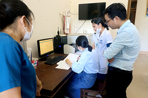 Cán bộ CDC tỉnh kiểm tra phần mềm tại cơ sở tiêm chủng TTYT Nam Đông