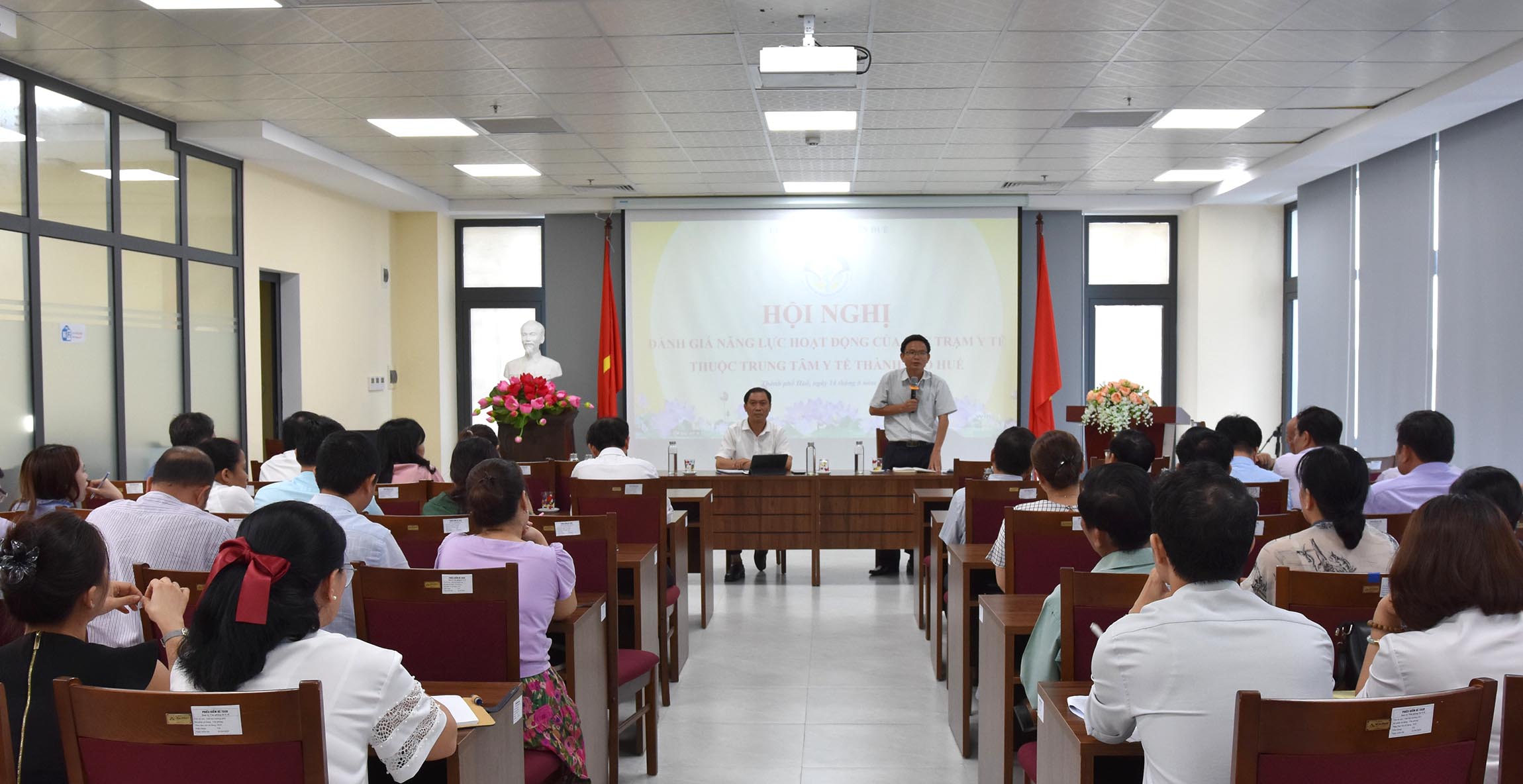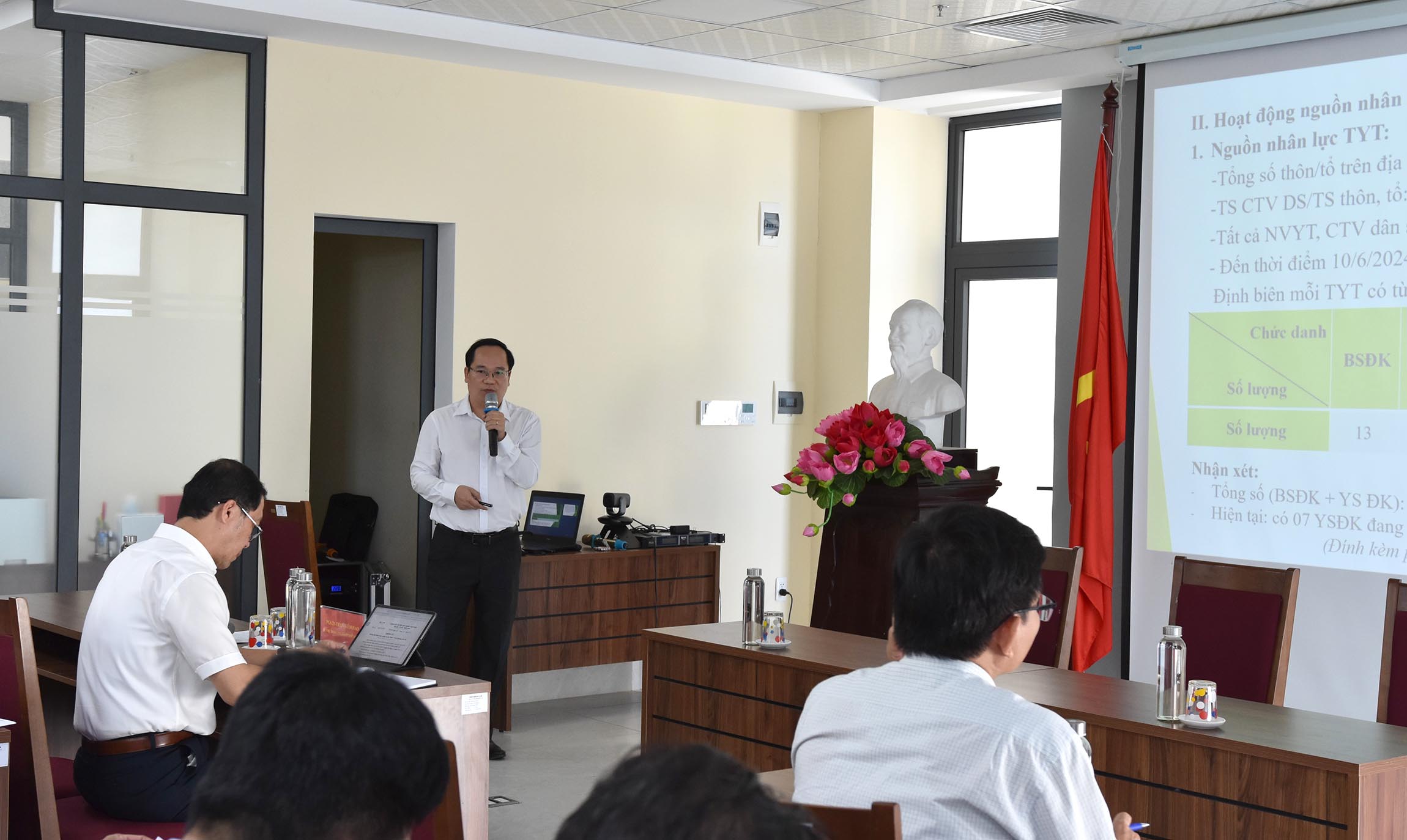 Ban Giám đốc TTYT thành phố Huế báo cáo thực trạng và năng lực Trạm Y tế trên địa bàn thành phố Huế.