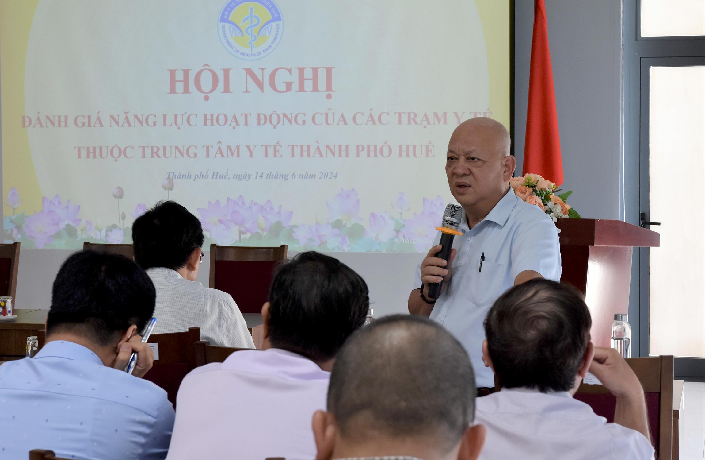 Ngày 14/6, Sở Y tế tổ chức Hội nghị đánh giá năng lực hoạt động các trạm Y tế thuộc TTYT thành phố Huế, PGS.TS.BS. Trần Kiêm Hảo - Giám đốc Sở Y tế chủ trì hội nghị. Ban Giám đốc, Trưởng/Phó các Phòng và chuyên viên Sở Y tế; Lãnh đạo và các bộ phận liên quan của Trung tâm Kiểm soát bệnh tật tỉnh, Chi cục DS-KHHGĐ, Chi cục ATVSTP; Ban Giám đốc, lãnh đạo các phòng chức năng và 36 trưởng trạm Y tế thuộc Trung tâm Y tế thành phố Huế cùng tham dự.