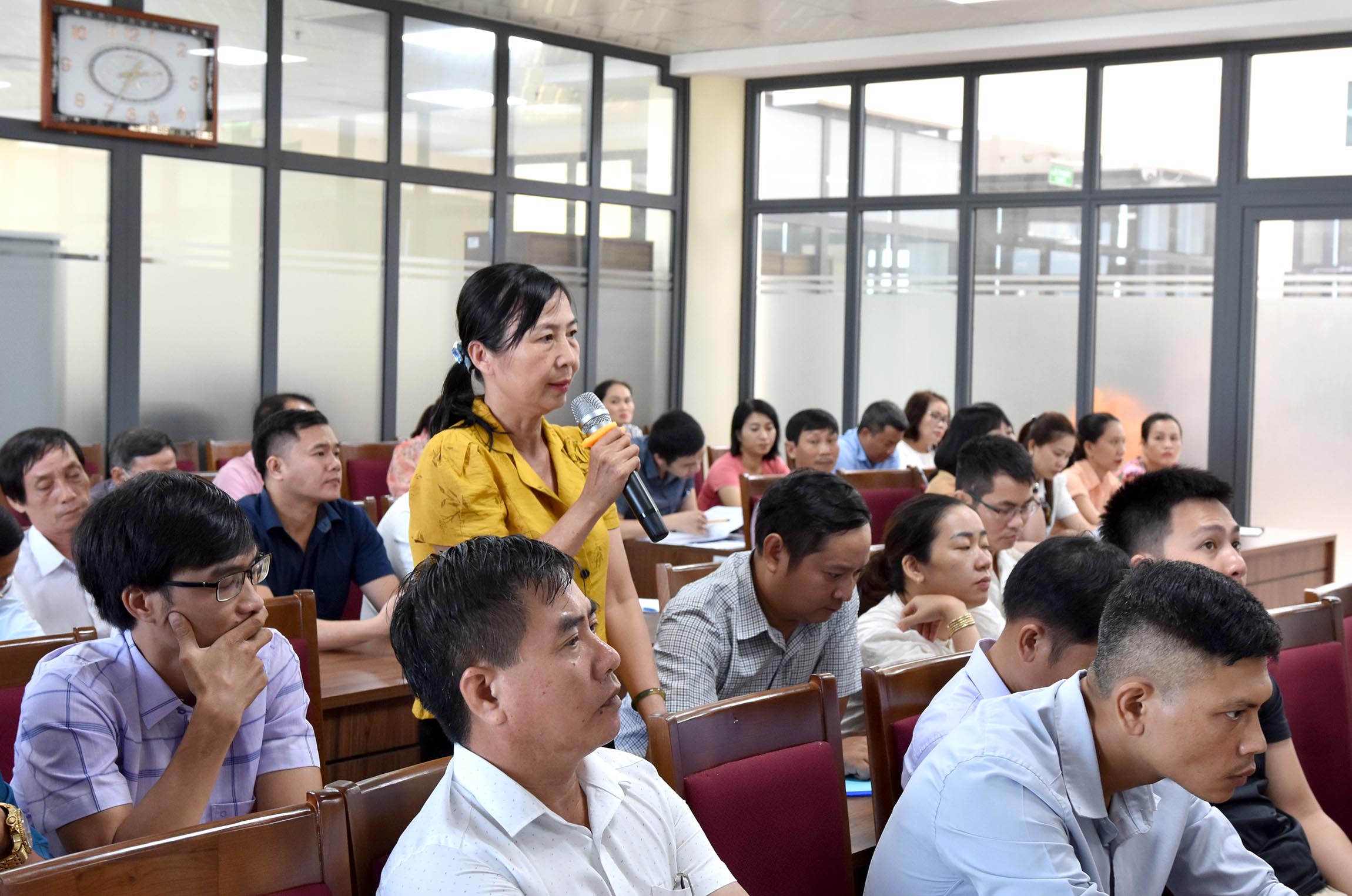 Trưởng trạm Y tế các xã/phường tham luận việc triển khai, những khó khăn, hạn chế và đề xuất các giải pháp nâng cao chất lượng CSSKND trên địa bàn.