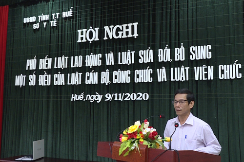 Ngày 9-11-2020, Sở Y tế Thừa Thiên Huế tổ chức Hội nghị phổ biến, giáo dục pháp luật. DSCKI. Lê Viết Bắc- Phó Giám đốc phụ trách Sở Y tế tham dự và chỉ đạo hội nghị.