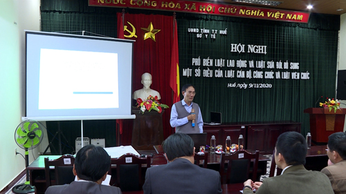 Tại Hội nghị, các đồng chí trong Ban lãnh đạo Sở; Ban thường vụ Công đoàn ngành Y tế; Thủ trưởng các đơn vị, Chủ tịch Công đoàn cơ sở và Trưởng phòng tổ chức- hành chính... các đơn vị trực thuộc đã được các báo cáo viên giới thiệu, phổ biến những nội dung chính như: Luật Lao động sửa đổi; Giới thiệu tổng quan về luật Lao động và 17 chương 220 điều của luật; Phổ biến bổ sung một sửa đổi của luật Cán bộ công chức và luật Viên chức. Tại hội nghị các đại biểu được giải đáp các thắc mắc về một số điều của luật Công chức và luật Viên chức sửa đổi.