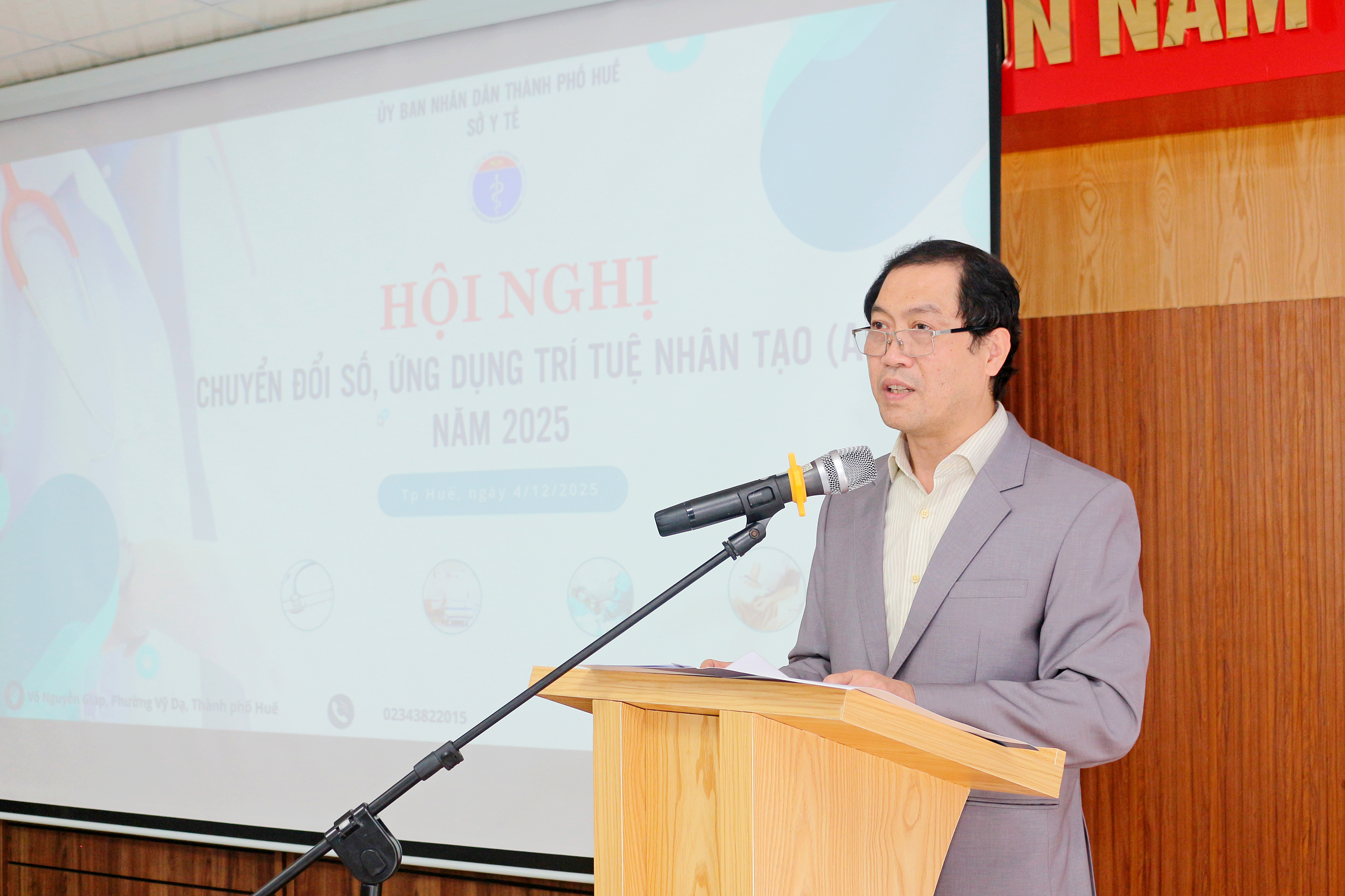 Ngày 04/12/2025, Sở Y tế thành phố Huế tổ chức Hội nghị tập huấn chuyển đổi số và ứng dụng trí tuệ nhân tạo (AI) năm 2025 theo Kế hoạch số 959/KH-SYT, nhằm nâng cao năng lực đội ngũ công chức, viên chức và thúc đẩy ứng dụng công nghệ số trong hoạt động y tế.