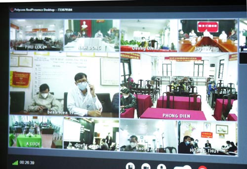 Chiều ngày 05-4-2022 tại văn phòng Sở Y tế, ThS.BSCKII Hoàng Trọng Quý - Phó Giám đốc sở Y tế đã chủ trì hội nghị trực tuyến triển khai công tác tiêm vắc xin phòng COVID-19 cho trẻ em từ 5 đến dưới 12 tuổi trên địa bàn toàn tỉnh. Tại đầu cầu Sở Y tế có đại diện các bệnh viện: Trung ương Huế, Đại học Y dược, Quân Y 268, Phục hồi chức năng, Y học Cổ truyền, Giao thông vận tải, Răng Hàm Mặt, Bệnh xá Công An tỉnh, các phòng chức năng của Sở Y tế và các cán bộ y tế các đơn vị liên quan, hội nghị kết nối trực tuyến với 9 Trung tâm Y tế trên địa bàn tỉnh.